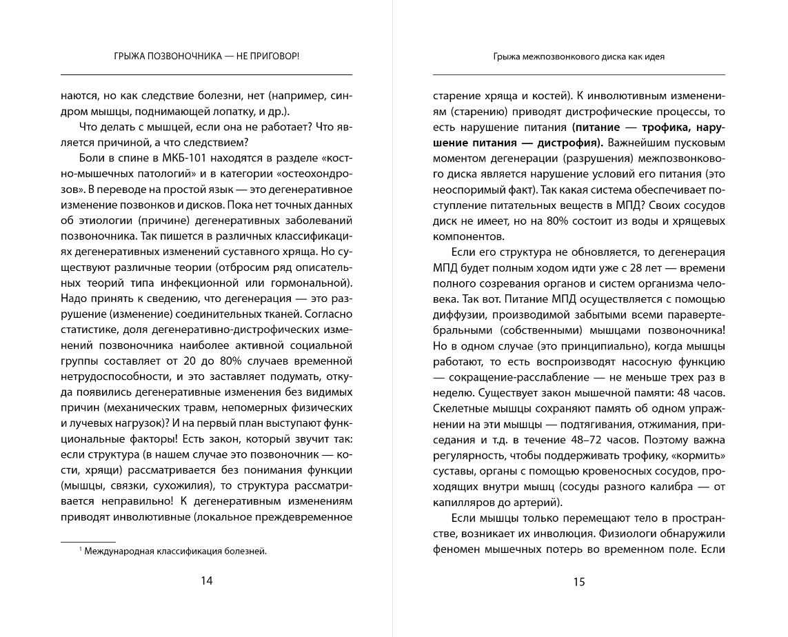 Девиз автора: "Ни дня без упражнений!" Все больше и больше людей, имеющих проблемы со спиной разочаровываются в общепринятых методах лечения: операциях и лекарственных препаратах. Известный врач Бубновский Сергей Михайлович в своей книге предлагает принципиально новый подход к решению проблемы грыжи позвоночника без операции. Что такое боль в спине? Нужен ли корсет при болях в спине? Что такое правильное движение? Как лечить грыжу позвоночника без лекарств? На эти и другие вопросы отвечает доктор Бубновский, имеющий за плечами более тридцати лет работы с самыми тяжелыми случаями болезни и умеющий справляться с ними без хирургических вмешательств, применяя правильные упражнения. Эта книга поможет как молодым людям в укреплении их здоровья, так и пожилым людям, имеющим тяжелые сопутствующие заболевания. Интересно, необычно, искренне!