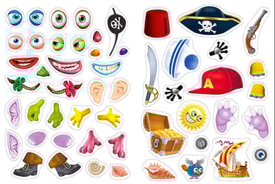 «‎Чудики. Пират»‎ из серии «‎Многоразовые наклейки «‎ЧУДИКИ»‎ – это пособие для развития мышления, мелкой моторики и фантазии. Пособие состоит из яркого фонового поля на плотном картоне с двумя нарисованными основами для создания чудиков-пиратов и набора многоразовых наклеек, необходимого для выполнения задания и украшения разворота. Пособия предназначены для дошкольного возраста.