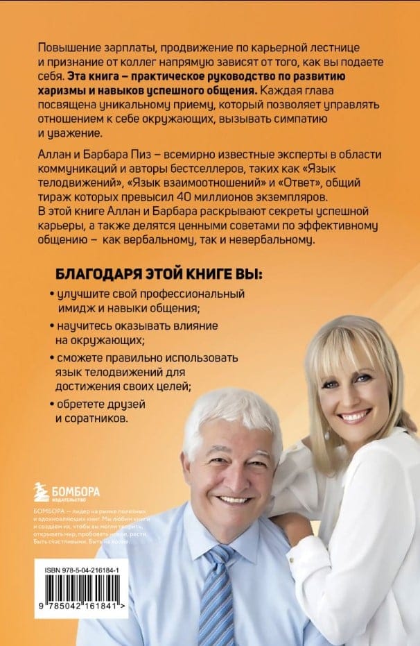 Аллан и Барбара Пиз — всемирно известные эксперты в области коммуникаций и авторы бестселлеров, таких как «Язык телодвижений», «Язык взаимоотношений» и «Ответ», общий тираж которых превысил 40 миллионов экземпляров. В этой книге Аллан и Барбара раскрывают секреты успешной карьеры, а также делятся ценными советами по эффективному общению — как вербальному, так и невербальному.