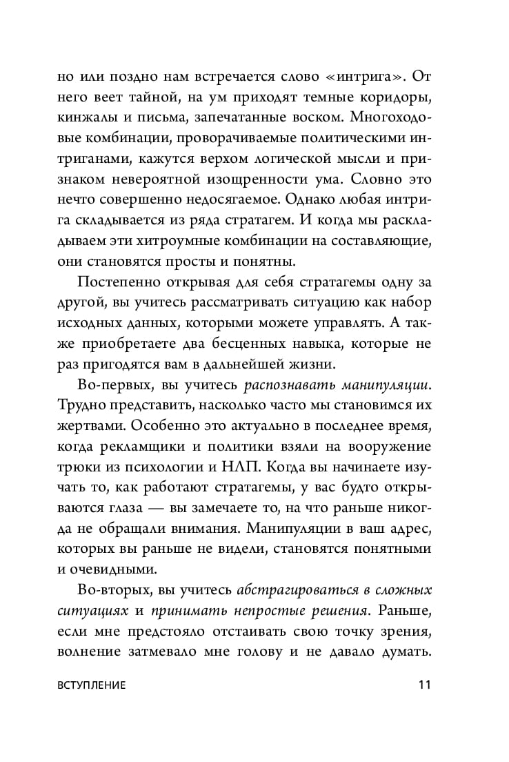 Анна Марчук, специалист по риторике и соавтор электронного журнала Teacher’s Assistant, предлагает новый взгляд на один из классических военных трактатов Древнего Китая, равный по значимости «Искусству войны» Сунь Цзы. В своей книге она рассказывает про 36 стратагем, которые помогут вам научиться просчитывать ситуацию на несколько шагов вперед, управлять событиями, распознавать манипуляции и принимать непростые решения.