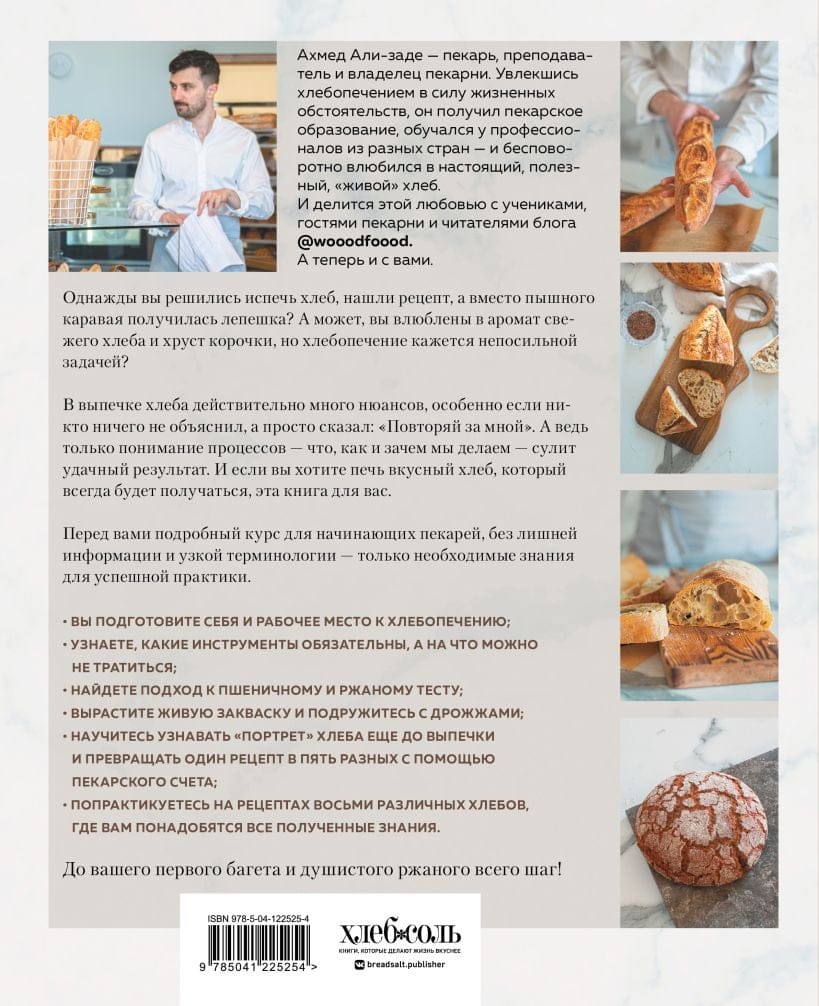 Ахмед Али-заде — автор этой книги, пекарь с многолетним стажем, преподаватель и владелец пекарни в Перми — тоже сталкивался с неудачами в начале пути. Но благодаря упорству он смог погрузиться в классическую технологию хлебопечения и открыть в хлебе удивительный, вкусный и полезный продукт со своим «лицом». В этой книге автор сконцентрировал весь личный опыт, чтобы вы сократили путь к своему первому пушистому тартину или чиабатте. Никаких сложных терминов и лишней научной теории — только важные факты и процессы, описанные понятным, дружелюбным языком.