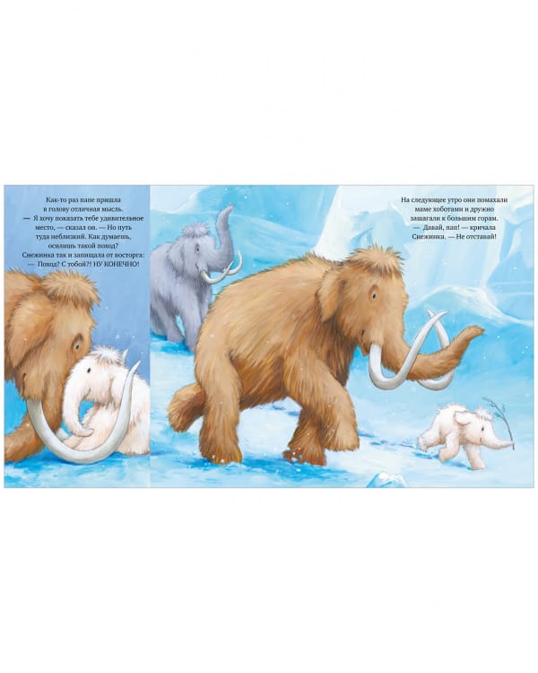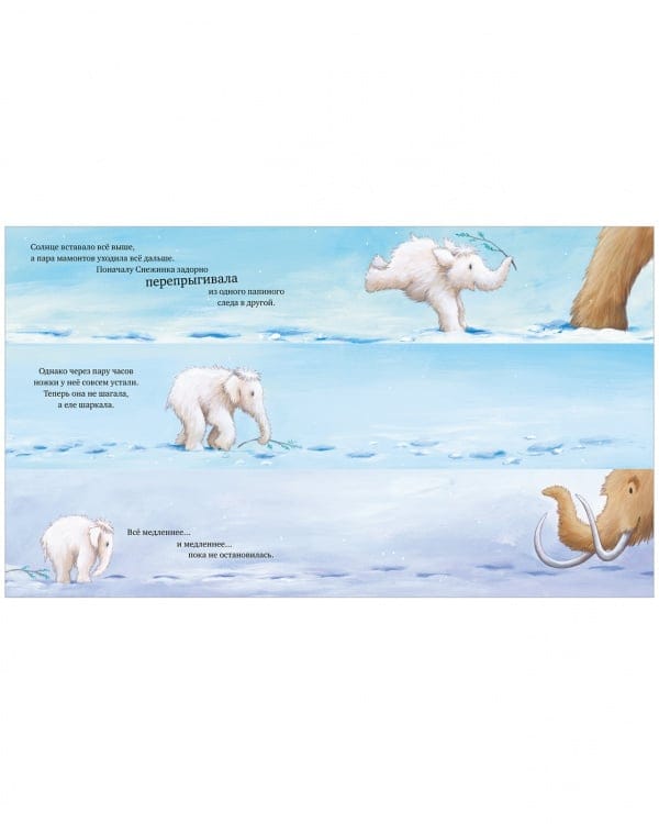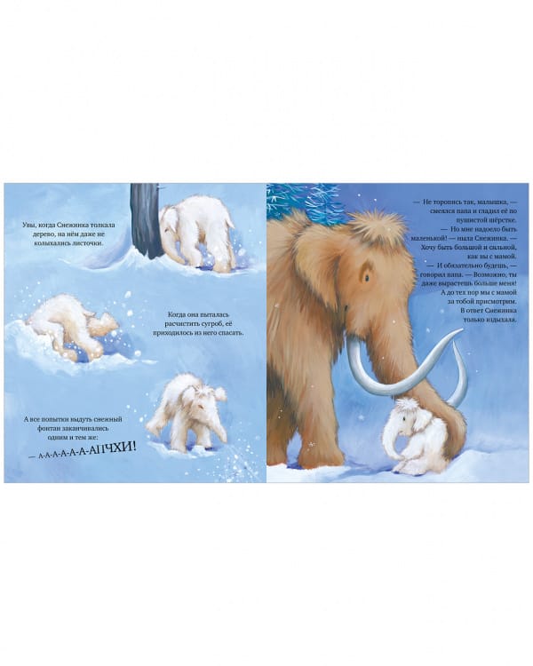 Маленькая Снежинка хочет быть такой же сильной и большой, как мама и папа. Ей просто не терпится стать взрослой и самой расчищать снежные завалы и пускать фонтаны из хобота. Чтобы утешить дочку, папа мамонт решает показать ей, каким маленьким он сам был в детстве...Невероятно трогательная семейная история от Джейн Чапмен подарит вам тепло, уют и незабываемое время с малышом.