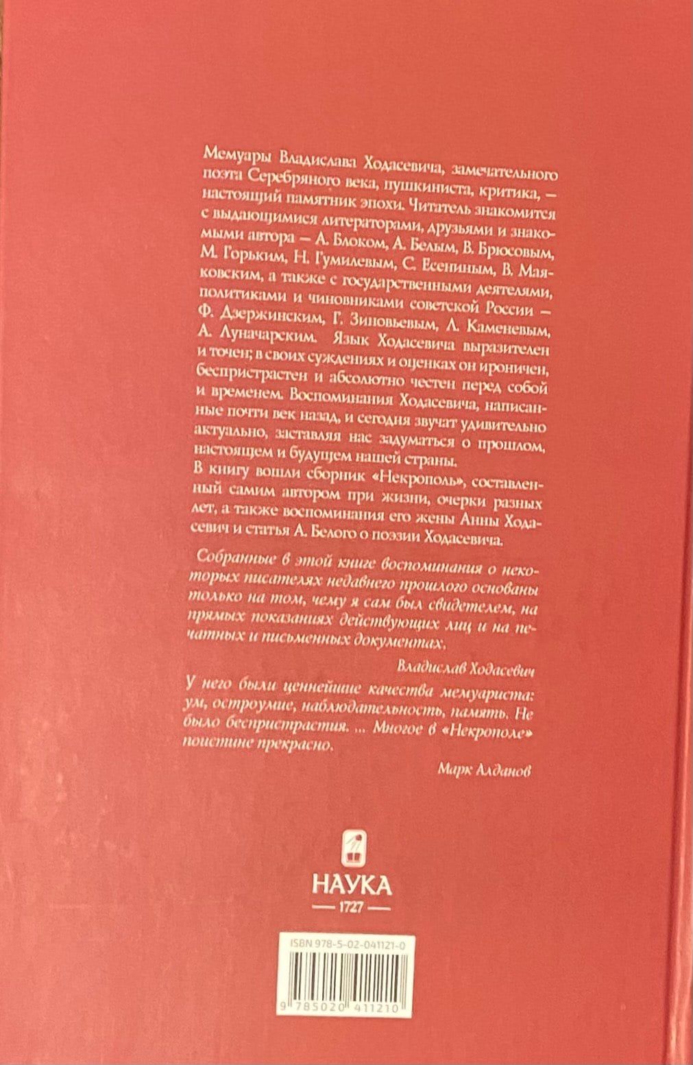 Владислав Фелицианович Ходасевич (1886–1939), выдающийся поэт Серебряного века, критик и историк литературы, оставил нам замечательные воспоминания, на страницах которых живут его друзья и знакомые — А. Блок, А. Белый, В. Брюсов, М. Горький, Н. Гумилев, С. Есенин, В. Маяковский, другие видные литераторы той эпохи, государственные деятели послереволюционной России — Ф. Дзержинский, А. Луначарский, Л. Каменев, Г. Зиновьев. Язык Ходасевича точен и выразителен, а оценки честны и порой весьма нелицеприятны.