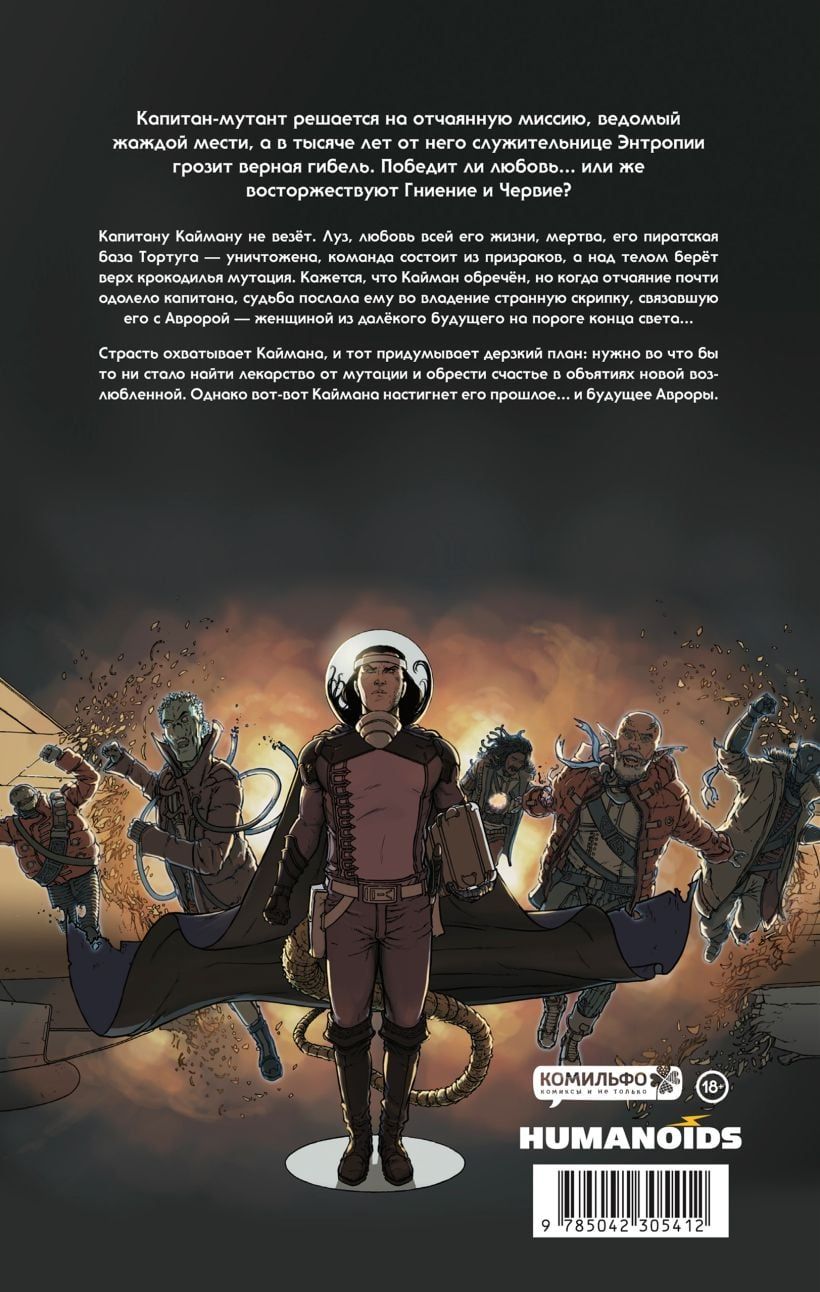 Капитану Кайману не везёт. Луз, любовь всей его жизни, мертва, его пиратская база Тортуга — уничтожена, команда состоит из призраков, а над телом берёт верх крокодилья мутация. Кажется, что Кайман обречён, но когда отчаяние почти одолело капитана, судьба послала ему во владение странную скрипку, связавшую его с Авророй — женщиной из далёкого будущего на пороге конца света...