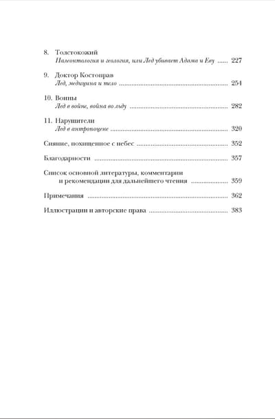 Задолго до появления человека Земля была покрыта льдом. Заснеженные горные вершины, ледники и наши холодильники скрывают в себе одно из самых интересных состояний молекулы H2O. Лед дарует и забирает жизнь, он используется во множестве сфер, и без него были бы немыслимы достижения науки. На страницах этой книги вы встретите Уинстона Черчилля, мамонтов, «ледяного человека» Этци и сэра Джона Франклина, об экспедиции которого Дэн Симмонс написал роман «Террор». Ледниковый период в Средние века, палеонтологические раскопки и разработка оружия во Вторую мировую войну — лед всегда был тихим героем человеческой истории.