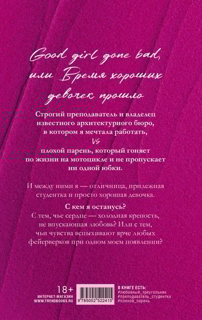 Строгий преподаватель и владелец известного архитектурного бюро, в котором я мечтала работать, VS плохой парень, который гоняет по жизни на мотоцикле и не пропускает мимо себя ни одной юбки.