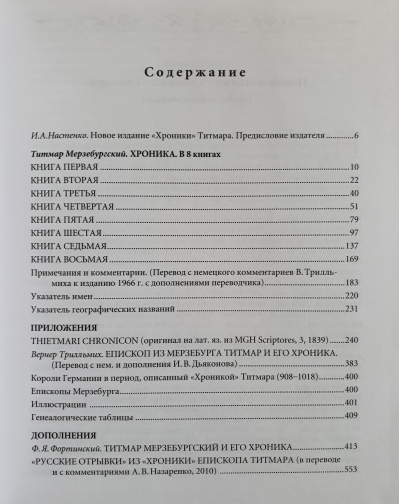 «Хроника» Титмара, епископа Мерзебургского (975-1018), охватывает период с правления Генриха I до 1018 г., является авторитетнейшим историческим источником, особенно по истории германо-славянских отношений; содержит важные сведения по истории Руси. Мерзебургская «летопись» епископа Титмара (известная в России, в основном, по немецким переводам) - один из самых цитируемых зарубежных источников в исследованиях по периоду правления первых русских князей Рюриковичей, позволяет провести исторические параллели и связать русскую историю «начальной летописи» в едином контексте с политической историей средневековой Европы. В настоящем издании исправлены погрешности предыдущего издания «Хроники» Титмара, являвшегося первым полным изданием «Хроники» на русском языке. Издание дополнено новыми приложениями.