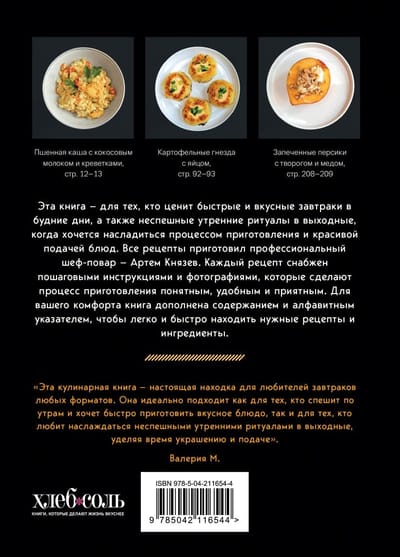 Скучная яичница надоела и хочется разнообразия? С книгой «Идеальные завтраки» вы научитесь готовить блюда на любой вкус — от обычных оладьев, которые полюбились всем, до трендового тоста с авокадо, покорившего не только социальные сети, но и кухни мировых звёзд. Вас ждут подробные пошаговые инструкции и фотографии, благодаря которым готовка станет лёгкой и понятной. Вы сможете без труда повторить любое блюдо и быть уверенными, что результат получится безупречным — по-настоящему идеальным.