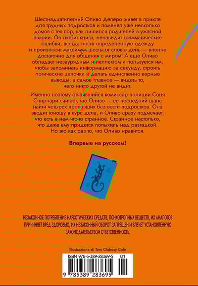 И именно поэтому отчаявшийся комиссар полиции Соня Спирлари считает, что Оливо — ее последний шанс найти четырех пропавших без вести подростков. Выполнив все требования юноши, коих оказалось немало (например, он ест только макароны с пармезаном, спит в комнате без отопления, сгрызает по пять чупа-чупсов в день), Спирлари вводит его в курс дела. И Оливо сразу подмечает, что есть в нем что-то странное. Странное настолько, что даже ему придется попыхтеть над разгадкой. И это как раз то, что Оливо нравится.