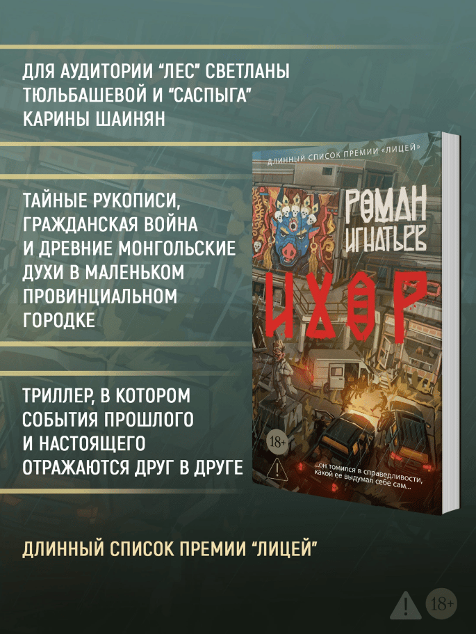 «Ихор» — динамичный мистический триллер, в котором события прошлого и сегодняшнего дня отражаются друг в друге, как в зеркале. Монгольские духи вмешиваются в жизни людей, чтобы вершить собственную волю.