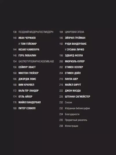 Джон Клиффорд составил визуальную энциклопедию знаковых имен графического дизайна, сопроводив ее действительно богатым иллюстративным материалом из выдающихся образцов дизайнерской мысли, среди которых знаменитые на весь мир плакаты, рекламы, логотипы, типографские шрифты, обложки книг и журналов и так далее. Автор сгруппировал свой список самых влиятельных графических дизайнеров в хронологическом порядке по четырем обширным временным периодам и таким образом осветил историю развития графического дизайна, от эпохи модерна, Тулуз-Лотрека и Обри Бердслея до цифровой эпохи, создателей логотипов джинсов Levis's, обложек журнала Esquire. Эль Лисицкий и такие знаменитые графические работы как «Красным клином бей белых», Александр Родченко, пионер фотомонтажа, А.М. Кассандр, создавший новые гарнитуры шрифтов, Элвин Люстиг, произведший революцию в оформлении книжных обложек — каждый из них внес свой весомый вклад в становление современного графического дизайна. Книга станет настольной для начинающих графических дизайнеров, ищущих вдохновение. Идеальный подарок уже состоявшимся дизайнерам.