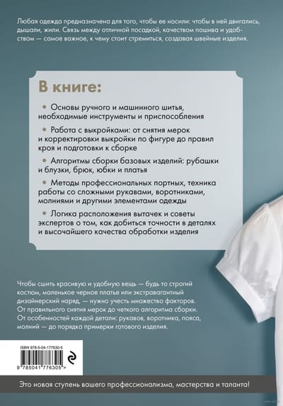 Чтобы сшить красивую и удобную вещь — будь то строгий костюм, маленькое черное платье или экстравагантный дизайнерский наряд, — нужно учесть множество факторов. От правильного снятия мерок до четкого алгоритма сборки. От особенностей каждой детали — рукавов, воротника, пояса, молний — до порядка примерки готового изделия.