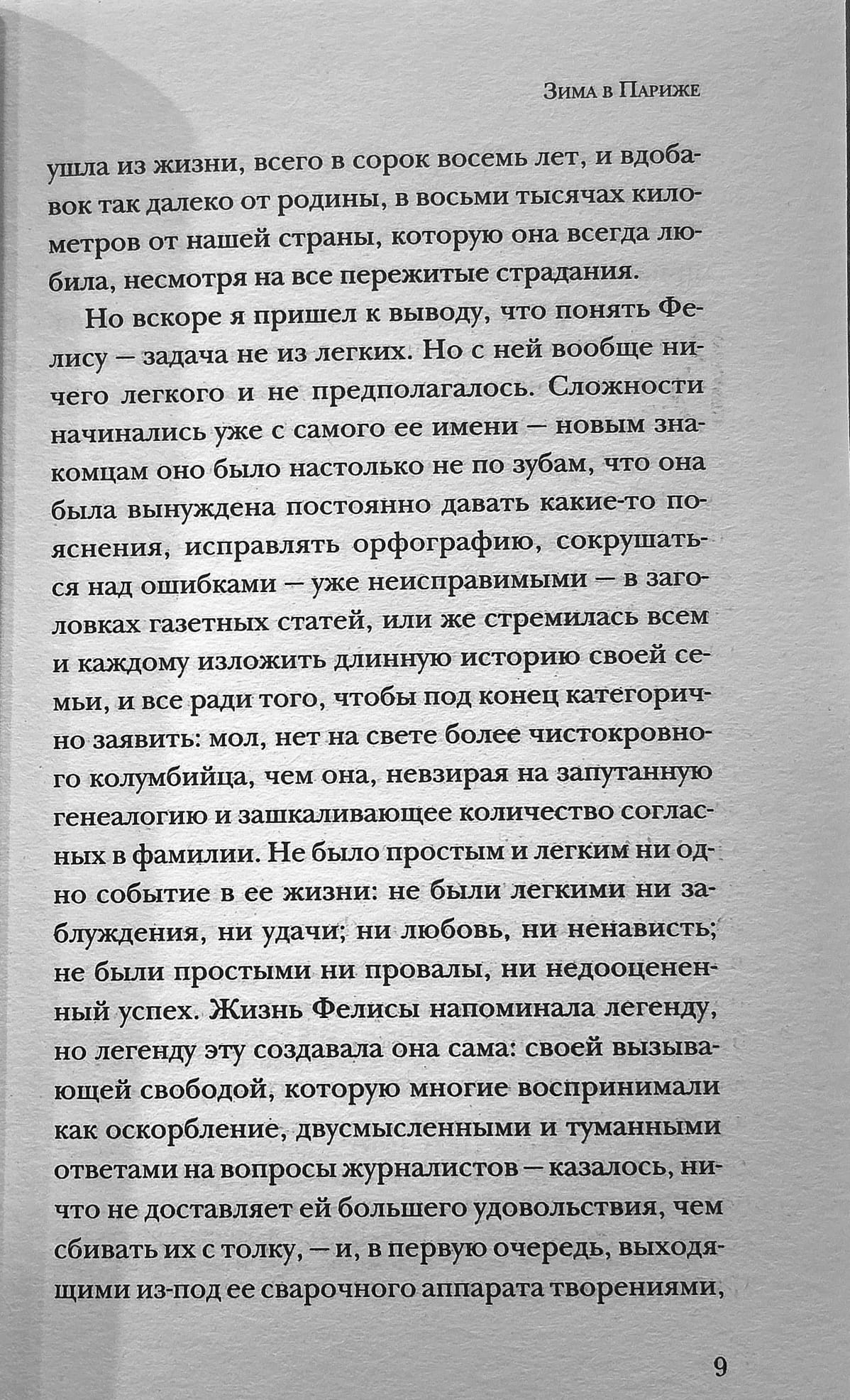 Творчество приносило ей огромную радость, однако взамен потребовало от неё высокую цену. Фелиса всегда любила Колумбию, но из-за политического преследования была вынуждена бежать из страны и умерла в Париже в возрасте сорока восьми лет. Кажется, жизнь Фелисы вся на поверхности, тем не менее Васкес написал настоящий роман-расследование, реконструируя, а местами и достраивая тайную жизнь женщины, неистово отстаивающую право оставаться свободной и заниматься творчеством.