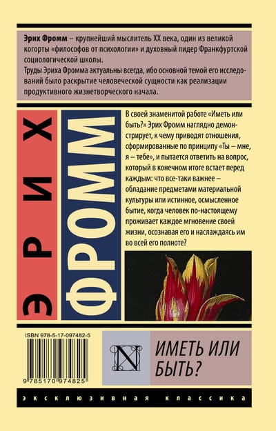 В своей знаменитой работе «Иметь или быть?» Эрих Фромм наглядно демонстрирует, к чему приводят отношения, сформированные по принципу «Ты – мне, я – тебе», и пытается ответить на вопрос, который в конечном итоге встает перед каждым: что все-таки важнее – обладание предметами материальной культуры или истинное, осмысленное бытие, когда человек по-настоящему проживает каждое мгновение своей жизни, осознавая его и наслаждаясь им во всей его полноте?