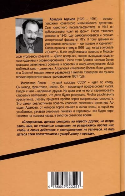 Аркадий Адамов – основоположник и классик советского детектива, а инспектор Виталий Лосев – его любимый герой, которому автор придал и собственные черты. В этой повести рассказывается о молодости старшего лейтенанта Лосева, который распутал убийство друга своего детства. Напряженная интрига, точные психологические портреты героев. И вместе с тем – фотография эпохи. Очень точная и колоритная. Хотите знать, как жили в СССР честные люди и преступники? Читайте самую близкую к реальности повесть Аркадия Адамова.