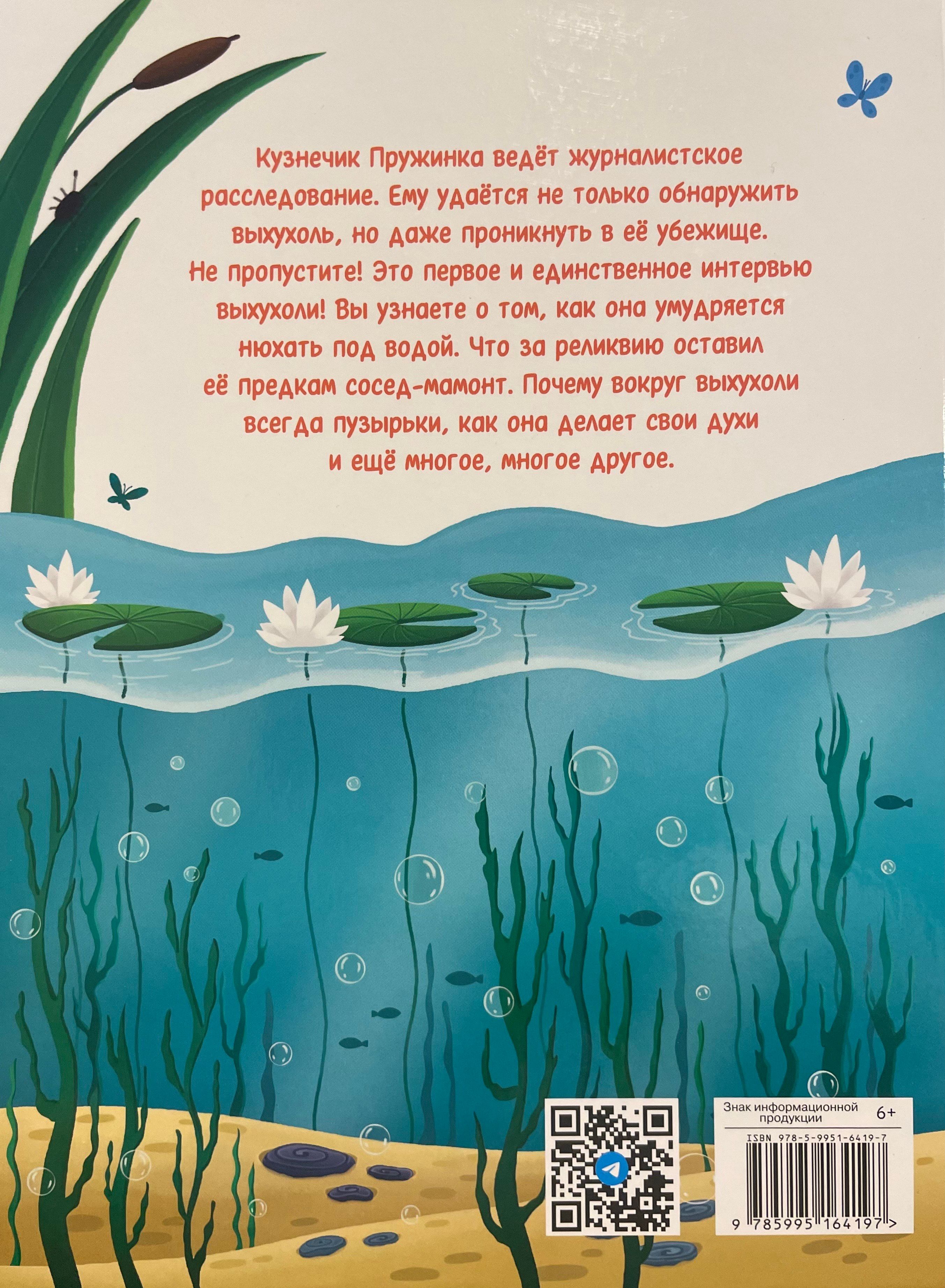 Кузнечик Пружинка – репортер в мире животных. В его волшебном рюкзаке найдется все, что поможет взять интервью у любого животного: и в непроходимых джунглях, и в жаркой Африке глубоко под водой и высоко в небе. В каждом путешествии Пружинку ждут невероятные открытия, новые друзья и удивительные приключения. В этот раз репортер Пружинка посетит малоизвестную для детей выхухоль