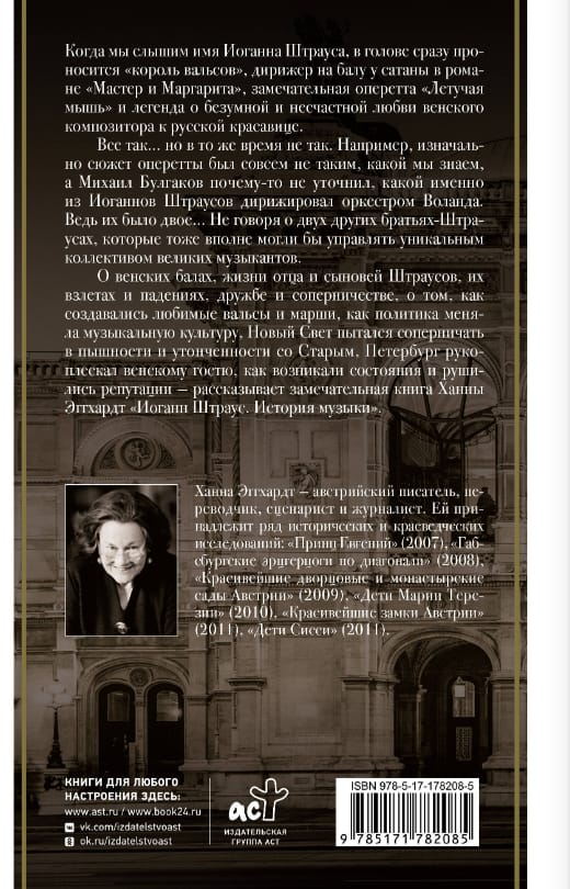 О венских балах, жизни отца и сыновей Штраусов, их взлетах и падениях, дружбе и соперничестве, о том, как создавались любимые вальсы и марши, как политика меняла музыкальную культуру, Новый Свет пытался соперничать в пышности и утонченности со Старым, Петербург рукоплескал венскому гостю, как возникали состояния и рушились репутации – рассказывает замечательная книга Ханны Эггхардт «Иоганн Штраус. История музыки» (оригинальное название: «Вальсируют все. Штраус-династия»)