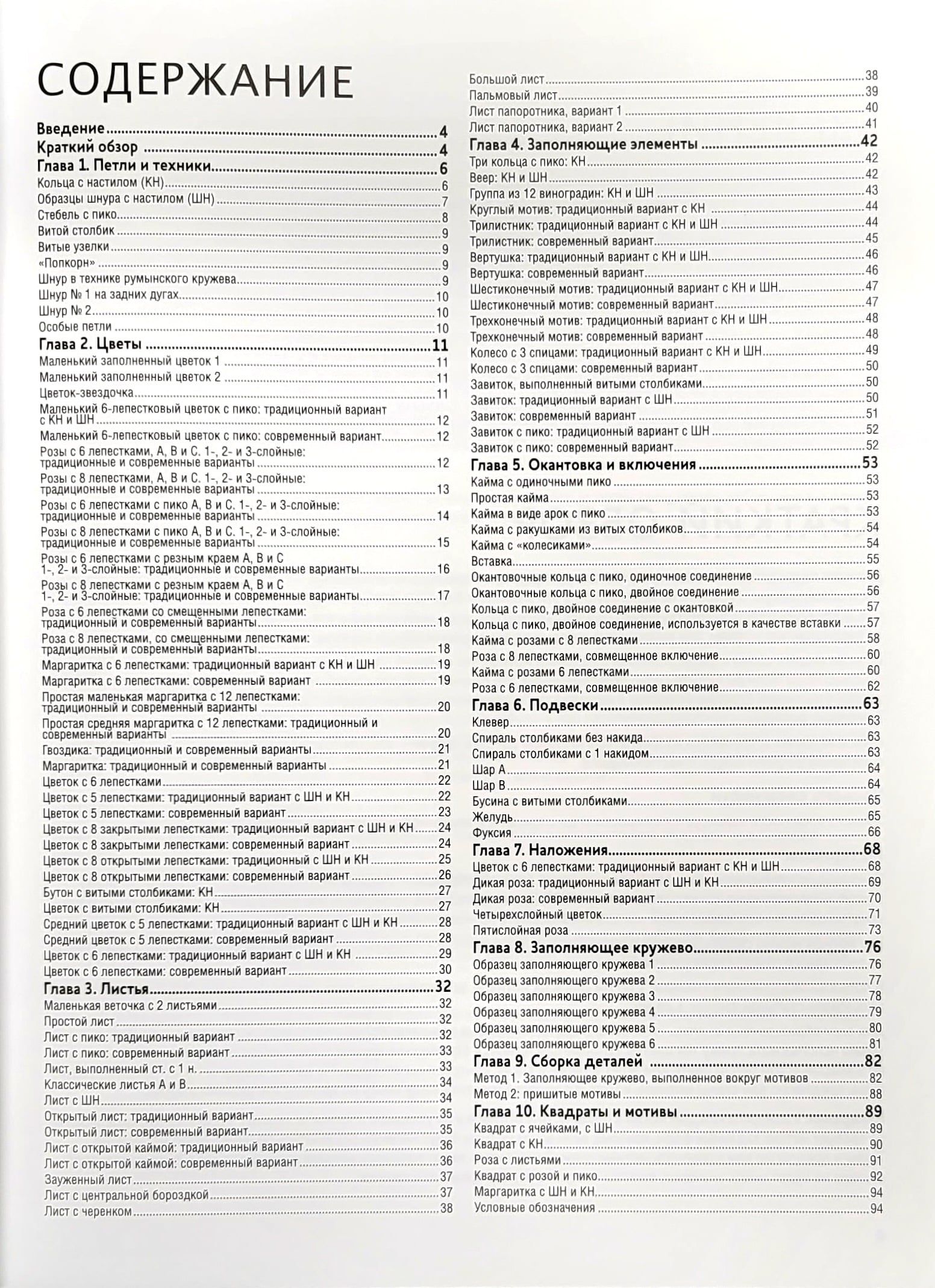 Цветы, листья, заполняющие мотивы, окантовка и включения, подвески, наложения, заполняющие кружева — все эти элементы, а также наиболее распространенные мотивы показаны на фотографиях с подробными описаниями и схемами.