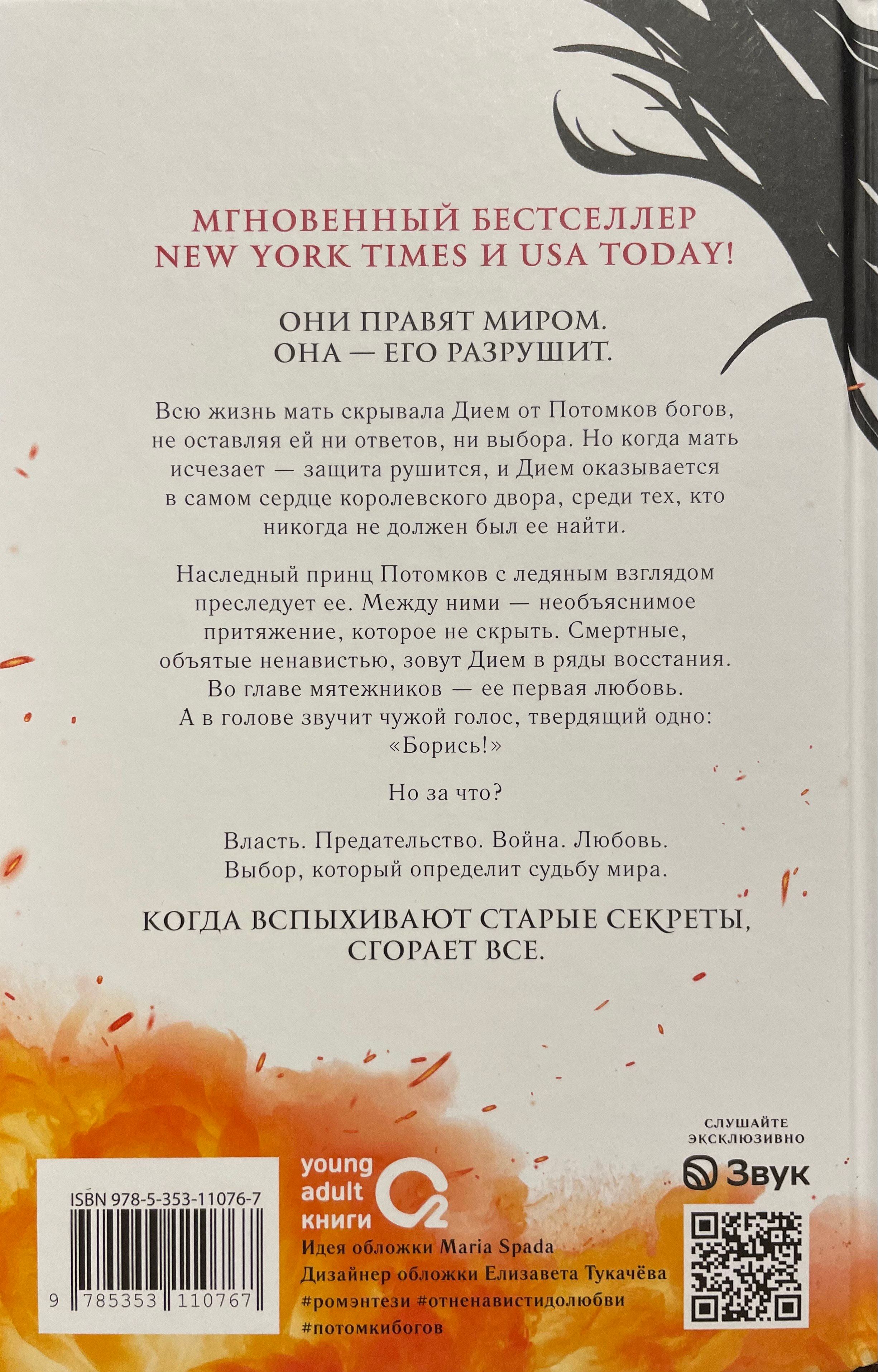 Наследный принц Потомков обжигает ледяным взглядом и буквально преследует ее. Между ними – необъяснимое притяжение, которое не скрыть. Смертные, объятые ненавистью, зовут Дием в ряды восстания. Во главе мятежников – ее первая любовь. А в голове звучит чужой голос, твердящий одно: «Борись!» Но за что?