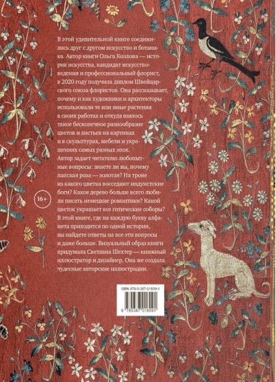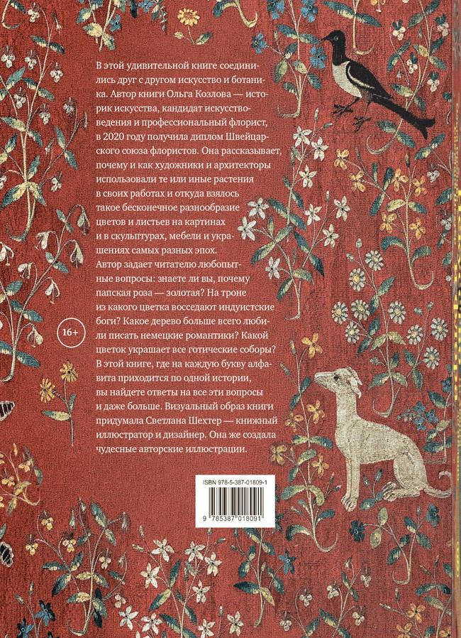 В этой удивительной книге соединились друг с другом искусство и ботаника. Автор книги Ольга Козлова — историк искусства, кандидат искусствоведения, арт-критик и профессиональный флорист, в 2020 году получила диплом Швейцарского союза флористов. Она рассказывает, почему и как художники и архитекторы использовали те или иные растения в своих работах и откуда взялось такое бесконечное разнообразие цветов и листьев на картинах и в скульптурах, мебели и украшениях самых разных эпох. Автор задает читателю любопытные вопросы: знаете ли вы, почему папская роза — золотая? На троне из какого цветка восседают индуистские боги? Какое дерево больше всего любили писать немецкие романтики? Какой цветок украшает все готические соборы? В этой книге, где на каждую букву алфавита приходится по одной истории, вы найдете ответы на все эти вопросы и даже больше. Более того, автор книги не только рассказывает о растениях на примерах из истории искусства, но и проводит целые ботанические расследования! Визуальный образ книги придумала Светлана Шехтер — книжный иллюстратор и дизайнер. Она же создала чудесные авторские иллюстрации.