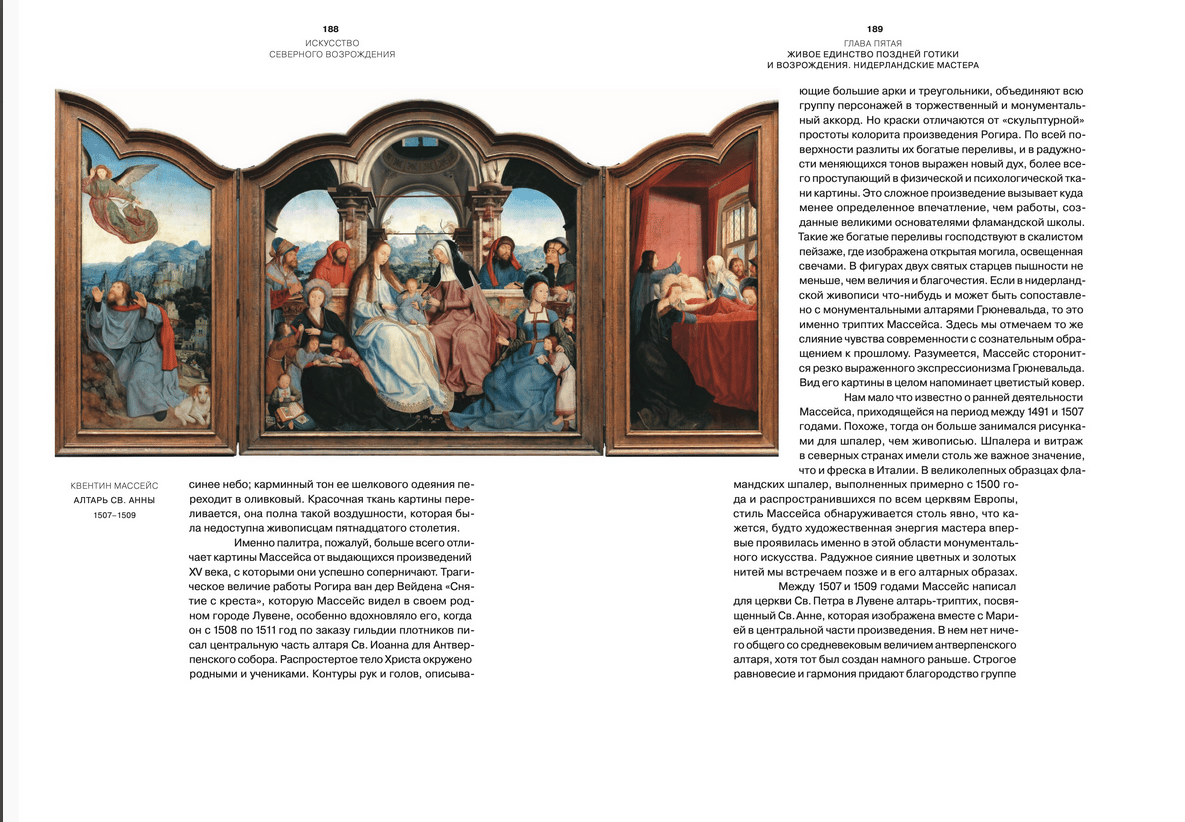 Книга известного австрийского историка искусства Отто Бенеша (1896–1964) посвящена ренессансным движениям XVI столетия за пределами Италии. Более всего автора привлекает взаимодействие этих движений — художественных и гуманистических, религиозно-идеологических и научных; его результатом стало формирование к северу от Альп, прежде всего в Германии, Нидерландах и Франции, мощного очага духовной и художественной культуры, равновеликой культуре итальянских мастеров — родоначальников европейского Возрождения. На страницах книги прослеживаются творческие поиски и достижения Альбрехта Дюрера, Маттиаса Грюневальда, Ганса Гольбейна Младшего, Питера Брейгеля Старшего, Жака Белланжа и других живописцев и скульпторов, открывших на Севере Европы уникальный «второй фронт» интернационального художественного прогресса — противоречивого, с нередкими поворотами вспять, к средневековому прошлому. Богато иллюстрированное издание адресовано искусствоведам, культурологам, а также широкому кругу читателей, интересующихся западноевропейским искусством.