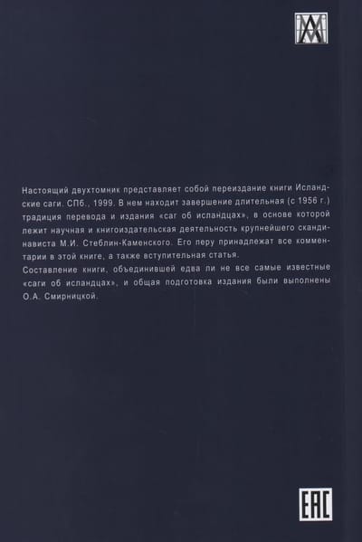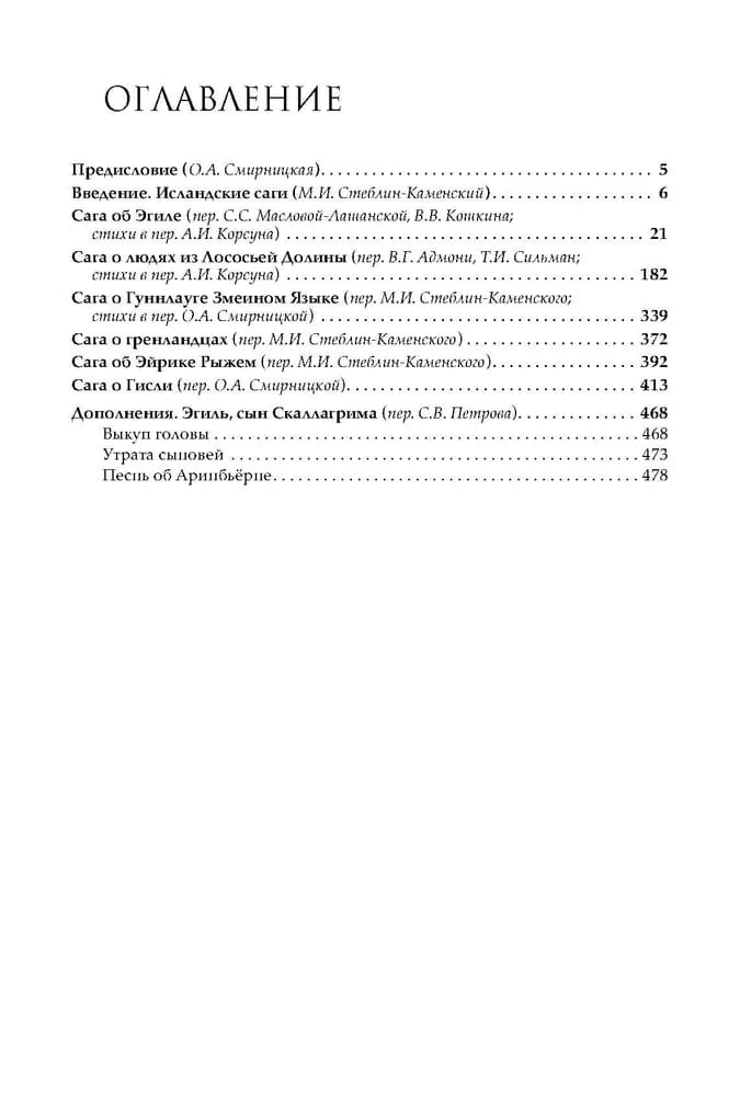 Составление книги, объединившей едва ли не все самые известные «саги об исландцах», и общая подготовка издания были выполнены О.А. Смирницкой. Книга рассчитана как на специалистов-скандинавистов, так и на широкий круг читателей.