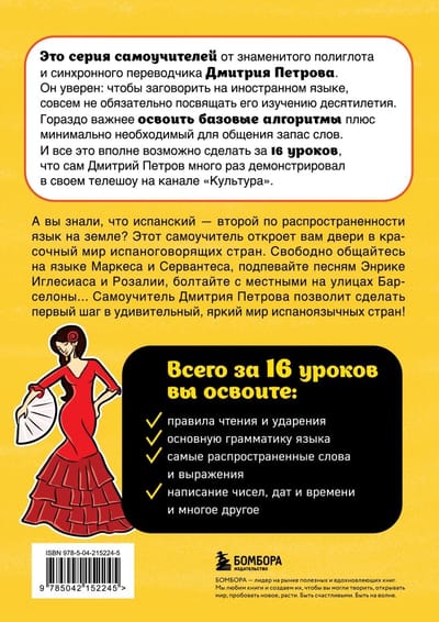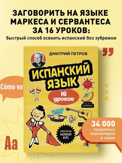 А вы знали, что испанский — второй по распространенности родной язык на земле? Этот самоучитель откроет вам двери к красочному миру испаноговорящих стран. Свободно общайтесь на языке Маркеса и Сервантеса, подпевайте песням Энрике Иглесиаса и Розалии, болтайте с местными на улицах Барселоны... Самоучитель Дмитрия Петрова позволит сделать первый шаг в удивительный яркий мир испаноязычных стран!