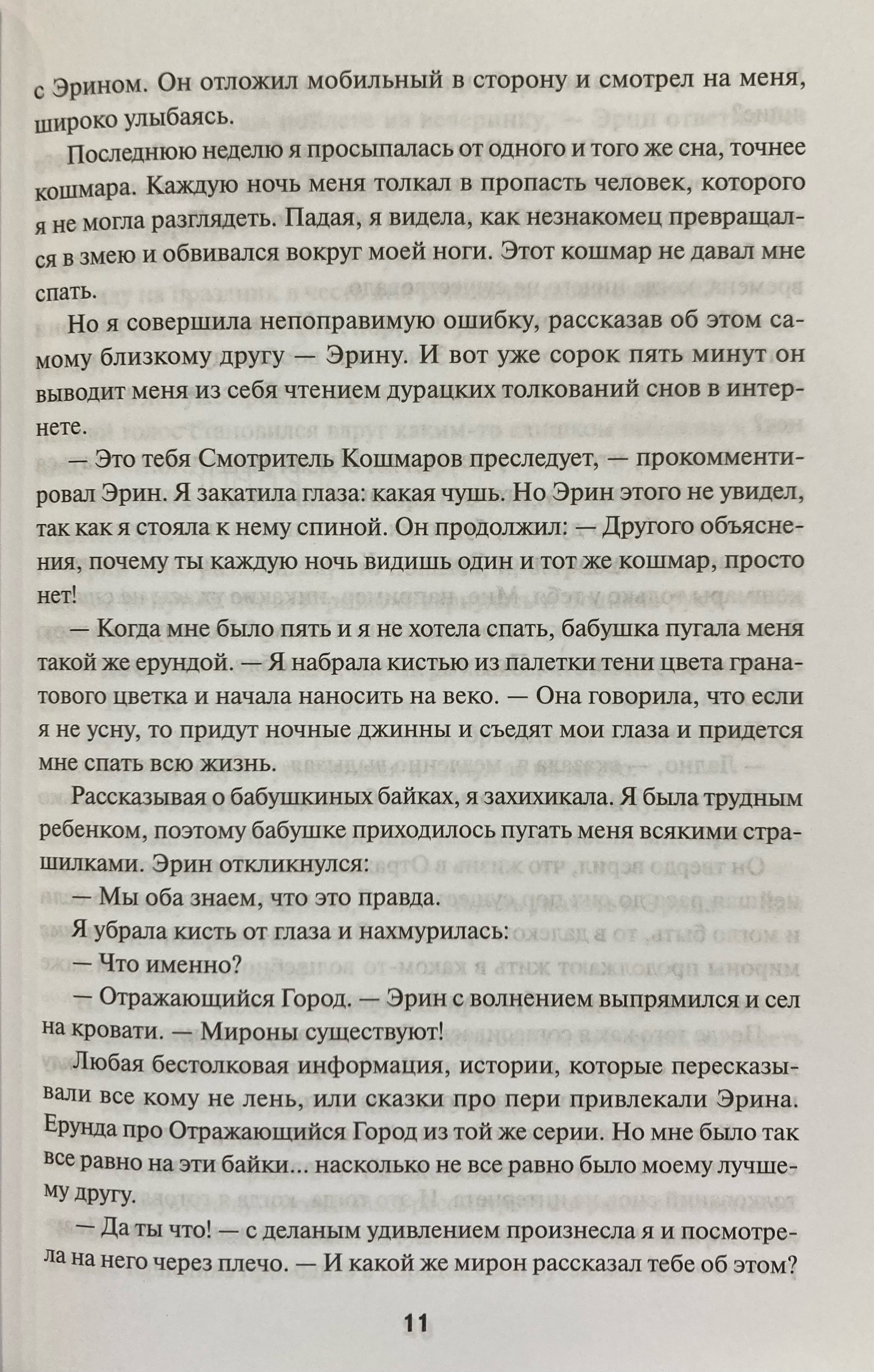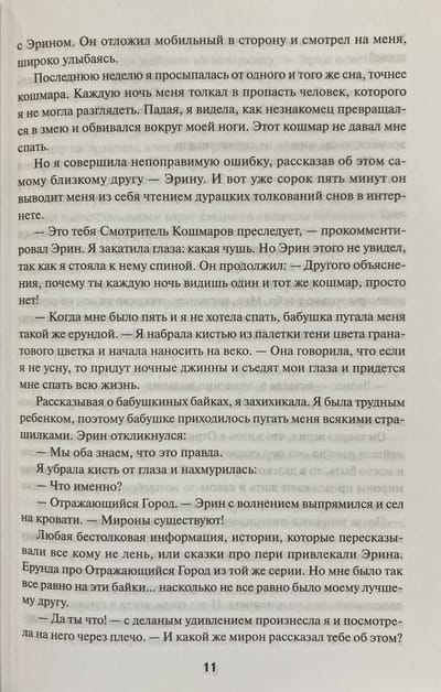 Однажды ночью Рена видит в зеркале пугающего незнакомца — Смотрителя Кошмаров, повелителя ее снов. Разгадав его загадку, Рена невольно освобождает Смотрителя, не зная, что сама станет жертвой проклятия. Роковая сделка переносит ее в древнее разрушенное королевство, где с каждым днем угасает жизнь. Теперь, чтобы спастись из зеркального плена, Рена должна раскрыть тайны Истлевших Руин империи — и не умереть.