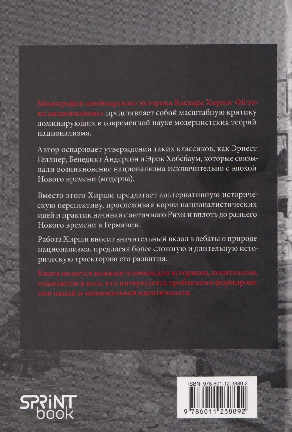 В этой масштабной работе Каспар Хирши предлагает новый взгляд на истоки национализма и формирование европейских наций. Основываясь на обширном исследовании письменных и визуальных источников, относящихся к периоду от Античности до раннего Нового времени, автор вновь интегрирует историю досовременной Европы в изучение национализма, описывая его как непреднамеренное и неизбежное последствие наследия римского империализма в Средние века. Хирши выделяет первых националистов среди гуманистов эпохи Возрождения, изучая их общественную роль и амбиции, чтобы по-новому взглянуть на историю политической науки в Европе, и утверждает, что их обращение к древним образцам для подражания привело к серьёзным противоречиям между их самовосприятием и политической функцией. Эта книга показывает, что только понимая развитие политики, науки и искусства в Европе до Нового времени, мы можем в полной мере осознать глобальную силу национализма в современном политическом контексте.