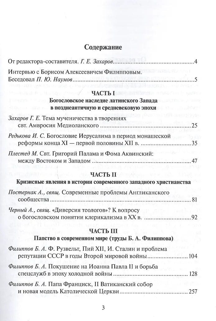 Сборник статей современных российских и зарубежных исследователей посвящен различным проблемам истории западного христианства от позднеантичной до современной эпохи. Особое внимание в нем уделяется латинским раннехристианской и средневековой богословским традициям, в том числе в их соотнесенности с наследием византийского Востока, кризисным явлениям в рамках современного католицизма и англиканского сообщества, а также истории папства в XX-XXI вв. Статьи сборника предваряет интервью с профессором кафедры всеобщей истории ПСТГУ Б. А. Филипповым, в котором он рассказывает как о своем научном пути, так и о подходе к изучению западного христианства.