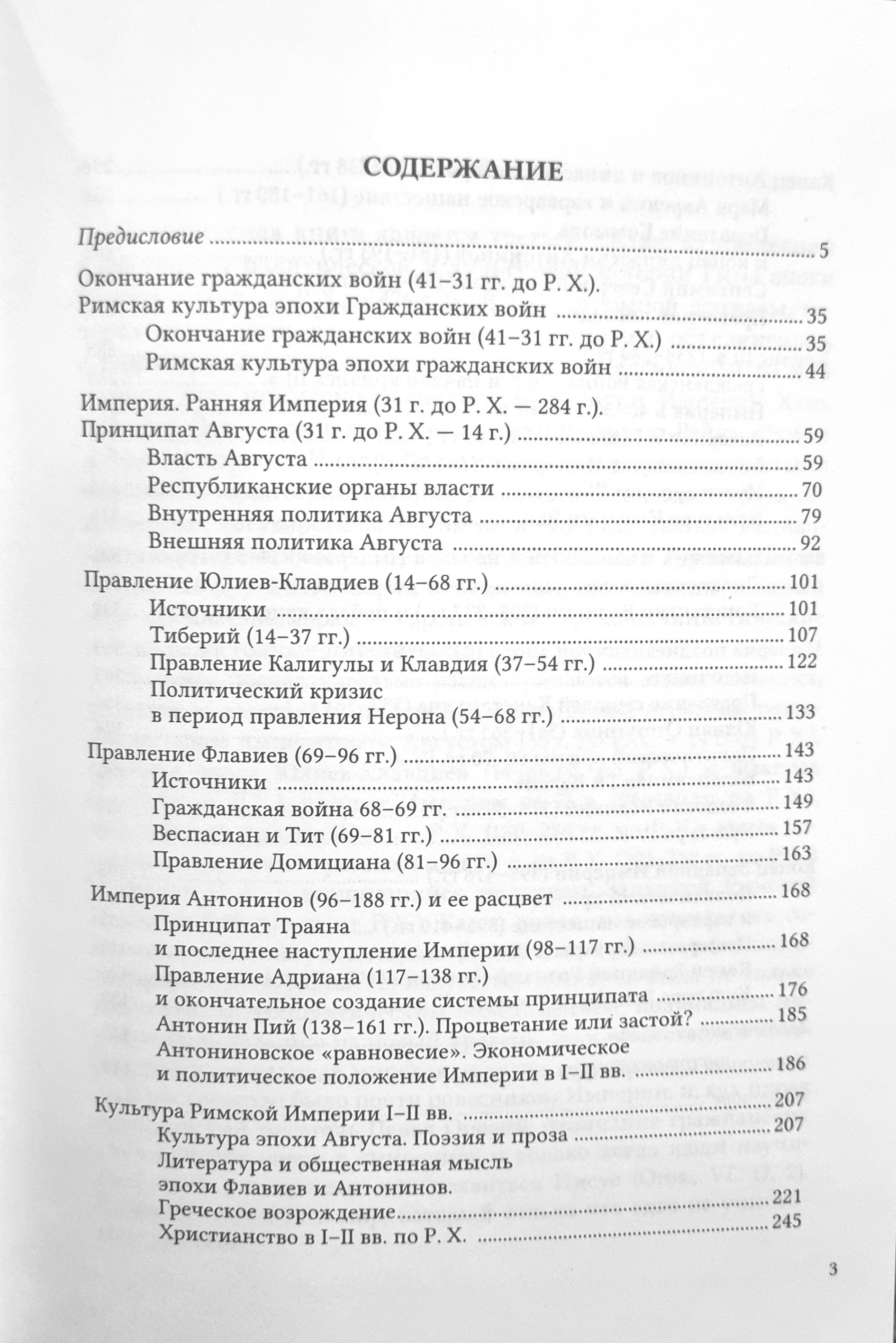 В книге рассмотрены этапы расцвета и падения Римской империи: ее создание императором Августом (31 г. до Р. Х. — 14 г. от Р. Х.), сложные эпохи Юлиев-Клавдиев (14–68 гг.) и Флавиев (69–96 гг.), расцвет (96–180 гг.), тяжелейший кризис (180–284 гг.), частичная реставрация (284–378 гг.), и, наконец, кризис, завершившийся падением Западной империи (378–476 гг.). Параллельно с политической историей рассматриваются римские культура, наука и образование, которые, при их греко-римской форме, стали результатом деятельности многих народов. Особое внимание уделено истории раннего христианства: взаимоотношениям христианства и государства, антихристианским гонениям (I–III вв.) и роли Римской империи в превращении христианства в мировую религию. Подчеркивается важное значение римской цивилизации для мировой истории.