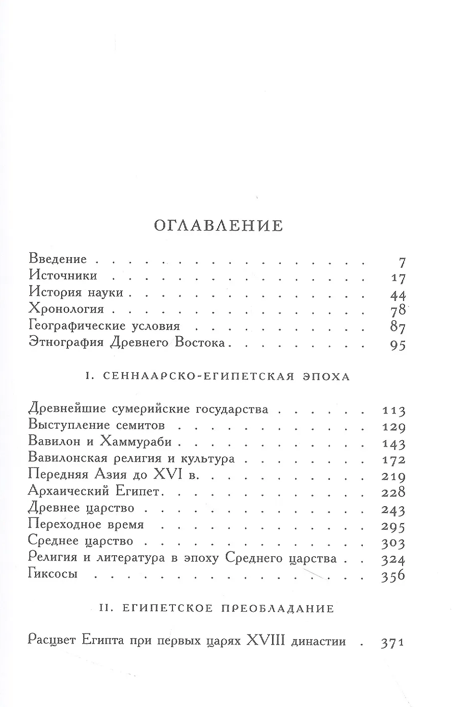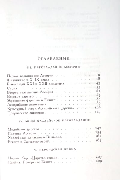 Первая часть труда посвящена региону в целом, его географии и этнографии, а также наиболее древним цивилизациям: шумерской, вавилонской и хеттской. Также была рассмотрена история Египта от архаического периода до XX династии включительно.