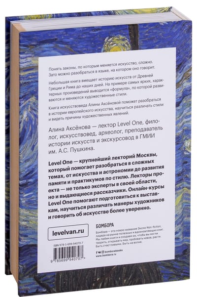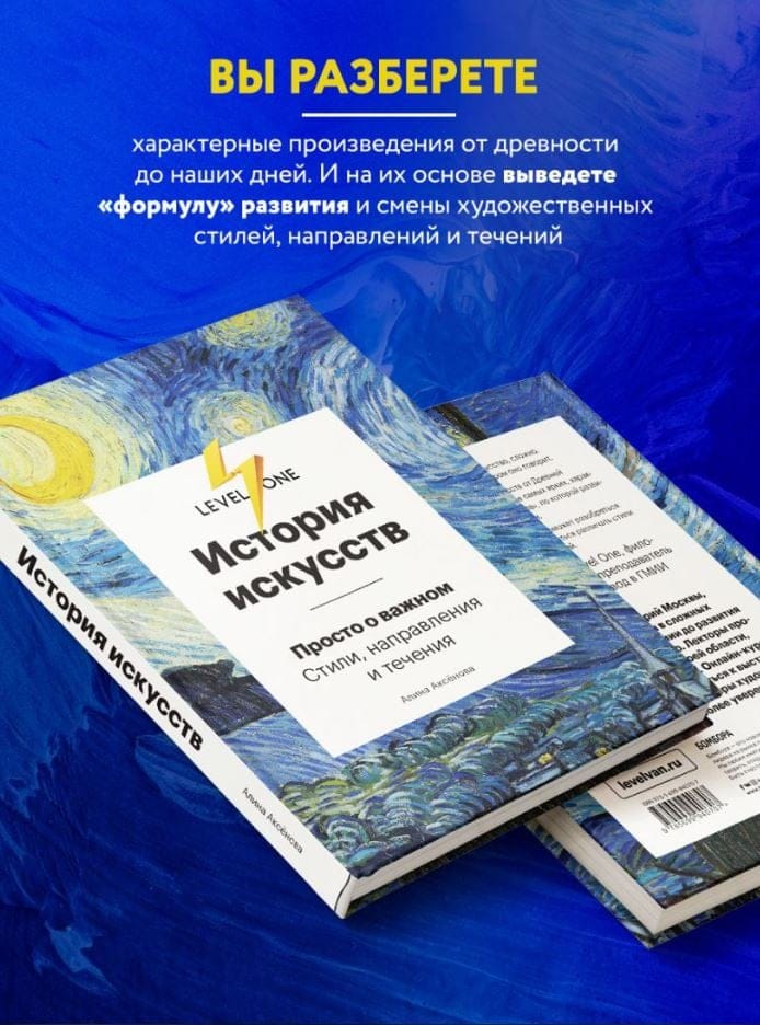 Книга написана вместе с Level One — крупнейшим лекторием Москвы, который помогает разобраться в сложных темах, от искусства и астрономии до развития памяти и практикумов по стилю. Автор книги – Алина Аксенова, лектор Level One, искусствовед, филолог и преподаватель истории искусств.