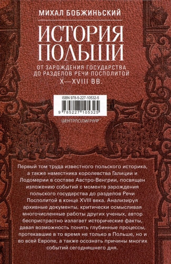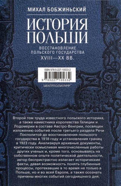 Первый том труда известного польского историка, а также наместника королевства Галиции и Лодомерии в составе Австро-Венгрии, посвящен изложению событий с момента зарождения польского государства до разделов Речи Посполитой в конце XVIII века. Анализируя архивные документы, критически осмысливая многочисленные работы других ученых, автор беспристрастно излагает исторические факты, давая возможность понять глубинные процессы, протекавшие в то время не только в Польше, но и во всей Европе, а также осознать причины многих событий сегодняшнего дня. Второй том труда посвящен изложению событий после третьего раздела Речи Посполитой до восстановления польского государства в 1918 году и установления границ в 1923 году. Анализируя архивные документы, критически осмысливая многочисленные работы других ученых и, кроме того, основываясь на собственном опыте политической деятельности, автор беспристрастно излагает исторические факты, давая возможность понять глубинные процессы, протекавшие в то время не только в Польше, но и во всей Европе, а также осознать причины многих событий сегодняшнего дня.
