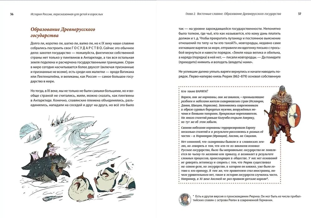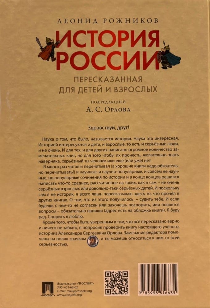 Задуманная как подражание «Сатирикону», «История России, пересказанная для детей и взрослых» так же последовательно и в пародийном ключе описывает события, происходившие на территории России, со времен появления здесь мамонтов и первых людей, но, в отличие от знаменитой книги сатириконцев, рассчитана в первую очередь на молодого читателя. Авторская подача материала и антисерьезный стиль повествования не делают при этом книгу менее познавательной и интересной.
