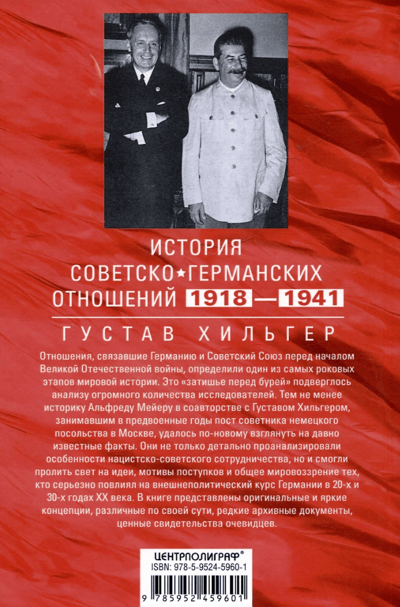 Отношения, связавшие Германию и Советский Союз перед началом Великой Отечественной войны, определили один из самых роковых этапов мировой истории. Это «затишье перед бурей» подверглось анализу огромного количества исследователей. Тем не менее Густаву Хильгеру, занимавшему в предвоенные годы пост советника немецкого посольства в Москве, в соавторстве с историком А. Мейером удалось по-новому взглянуть на давно известные факты. Он не только детально проанализировал особенности нацистско-советского сотрудничества, но и смог пролить свет на идеи, мотивы поступков и общее мировоззрение человека из числа тех, кто серьезно повлиял на внешнеполитический курс Германии в 20-х и 30-х годах XX века. В книге представлены оригинальные и яркие концепции различных направлений, редкие архивные документы, ценные свидетельства очевидцев.