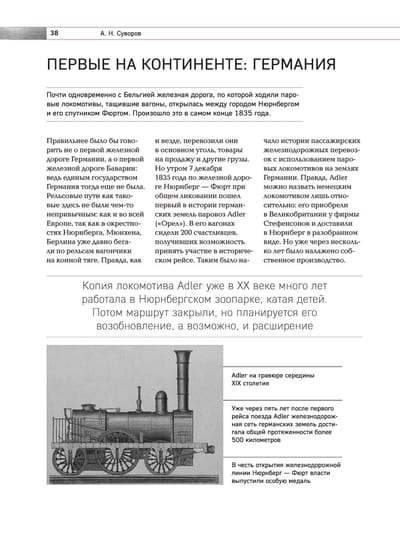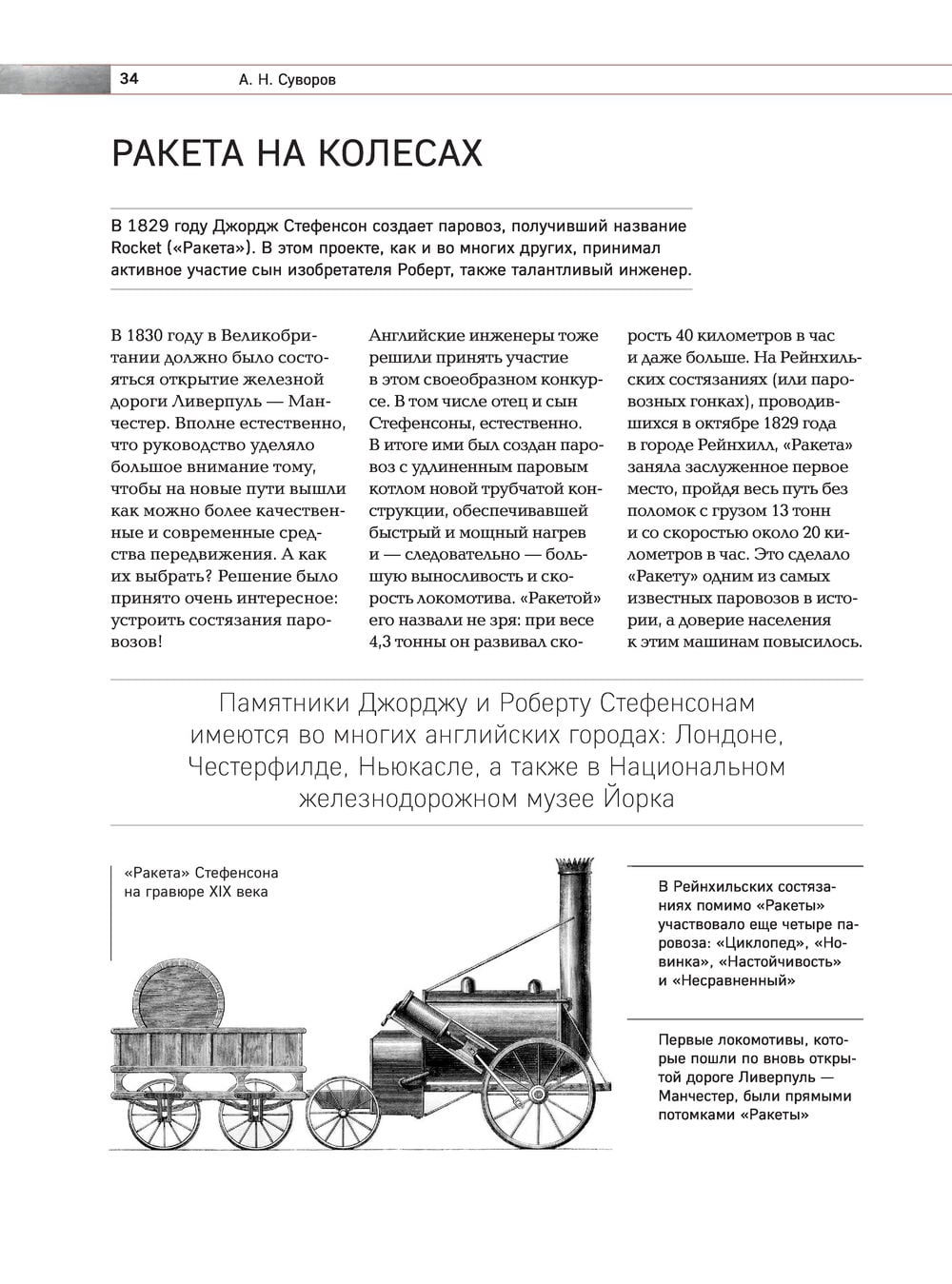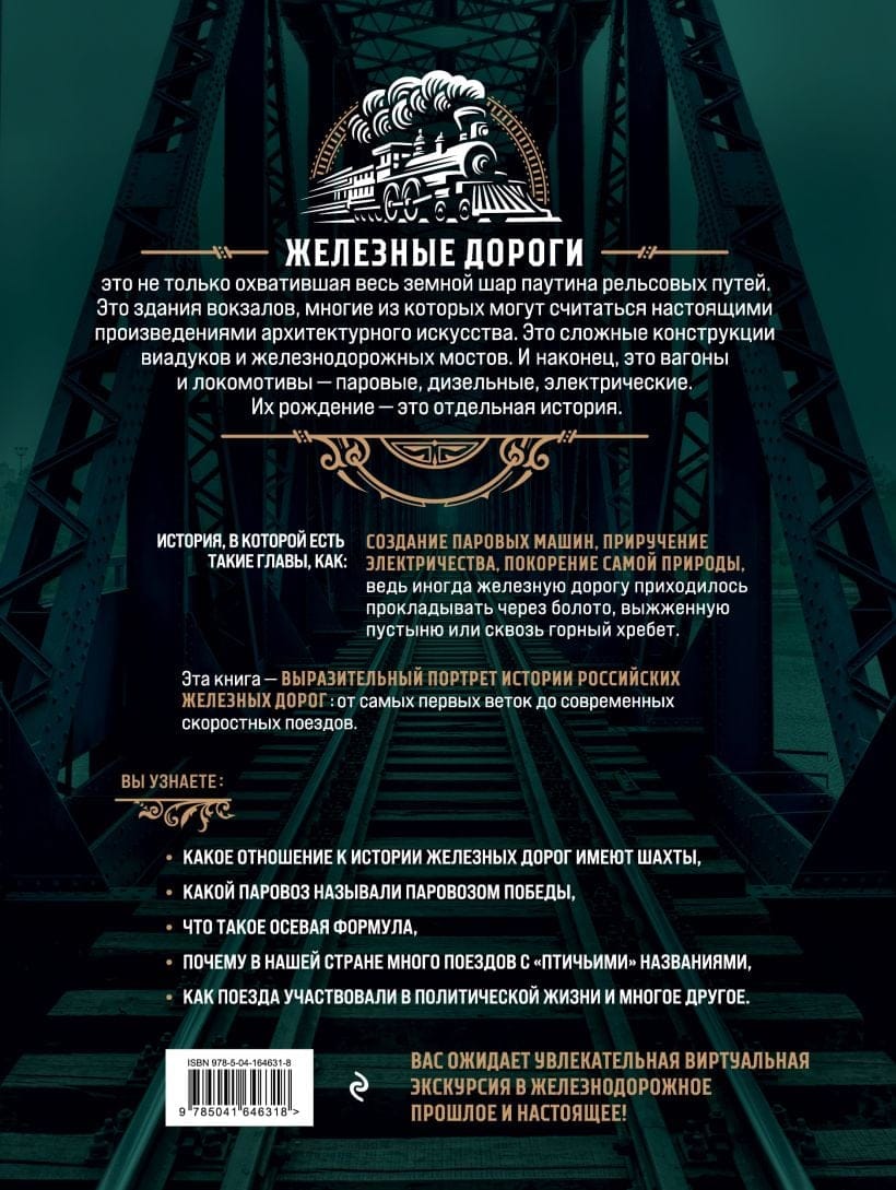 История железных дорог — это часть истории страны, которая погружает нас в ту эпоху, знакомит с бытом того времени. В книге Алексея Суворова собраны удивительные истории и факты о строении первой железной дороги, о создании новых двигателей, о работе на шахте и многое другое. Это издание позволит вам совершить путешествие в прошлое, оно придется по душе всем любознательным авантюристам.