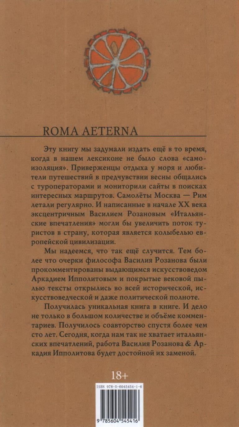 Настоящее издание «Итальянских впечатлений» значительно дополнено: очерки сопровождаются комментариями старшего научного сотрудника Отдела западноевропейского изобразительного искусства Государственного Эрмитажа Аркадия Ипполитова, автора блистательных книг «Банда Рафаэля», «Особенно Ломбардия», «Просто Рим» и других.
