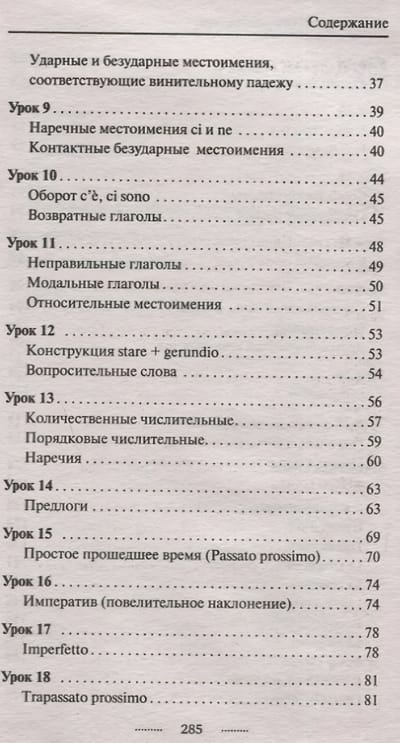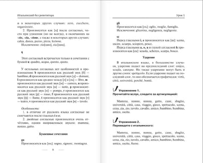 Завершают издание приложения, среди которых "Итальянские скороговорки", "Управление глаголов", "Список Сводеша" и другие.