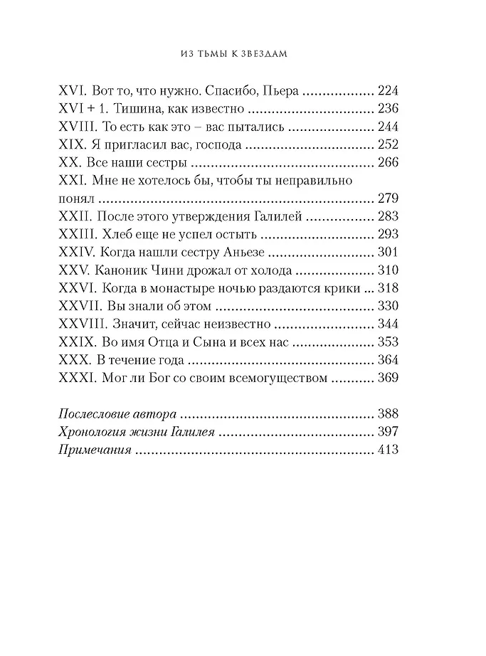 История – это не только документы и даты; она полна загадок. Книга «Из тьмы к звездам» - авторская реконструкция событий начала XVII века, происходивших во Флоренции на фоне прекрасных дворцов и старинных монастырей. Таинственное убийство, похищенные документы, загадочный иезуит вплетаются в рассказ о научных открытиях Галилео Галилея.