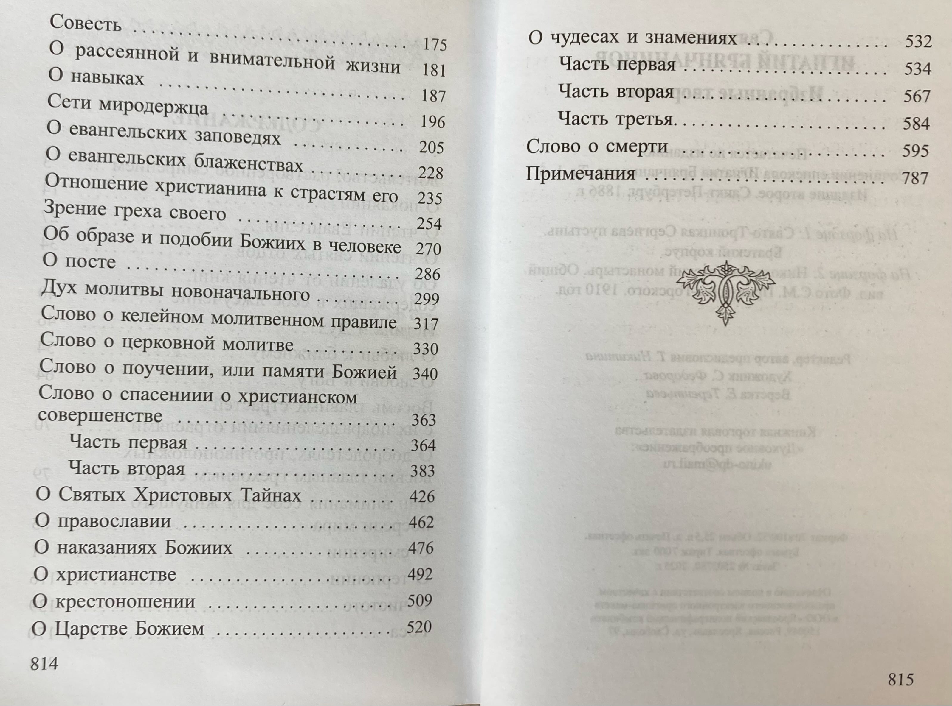 В данный сборник вошли отдельные главы из его основополагающих трудов «Аскетические опыты» и «Аскетическая проповедь», а также богословский трактат «Слово о смерти». В них излагается учение святых отцов о вере, молитве, посте, о евангельских заповедях и блаженствах, о покаянии, смирении, борьбе со страстями, любви к Богу и ближним.