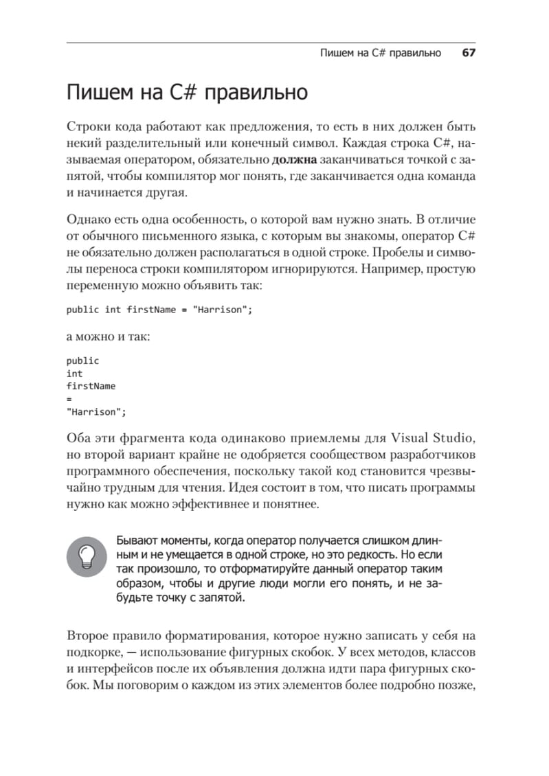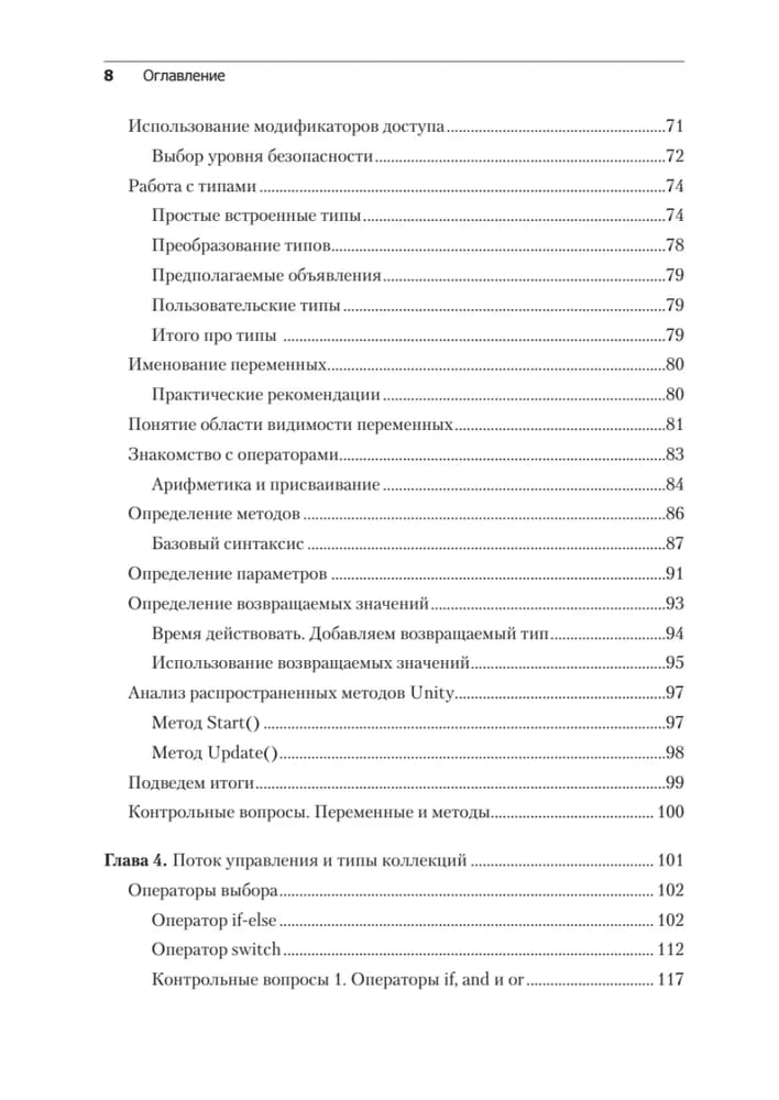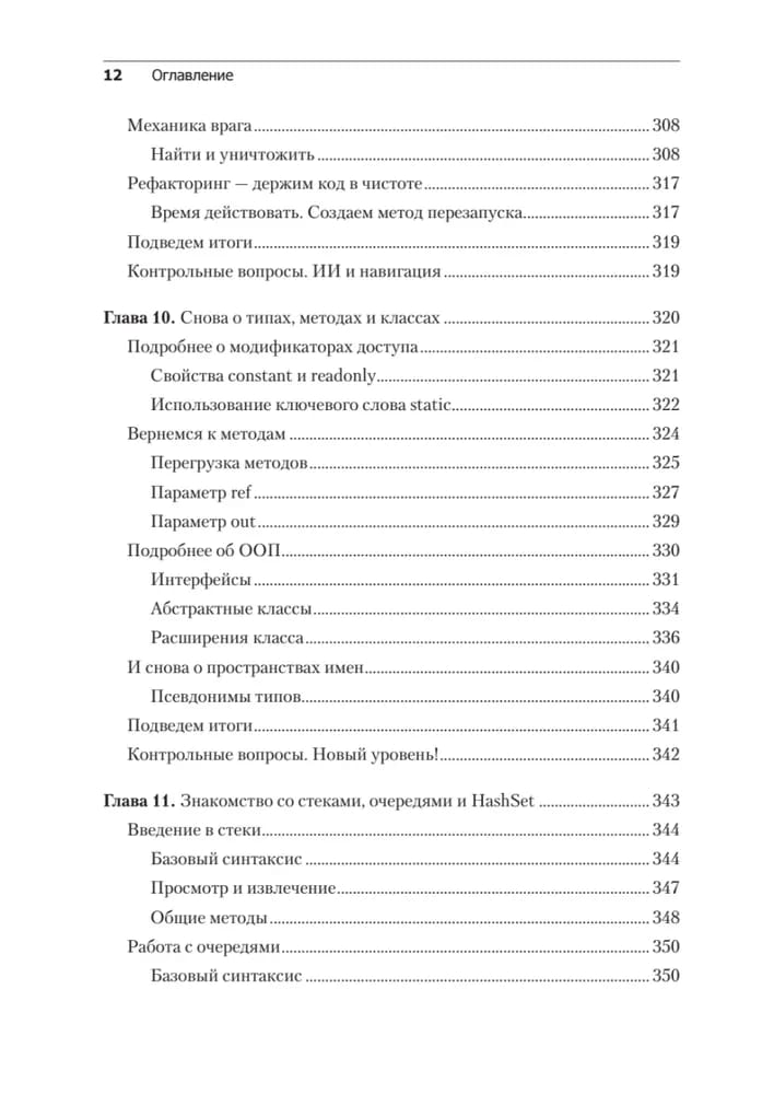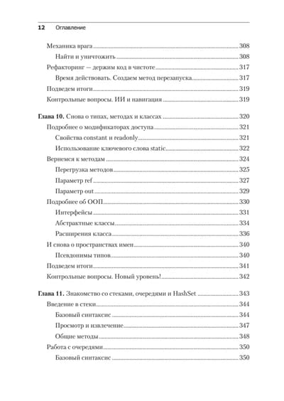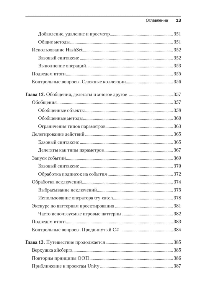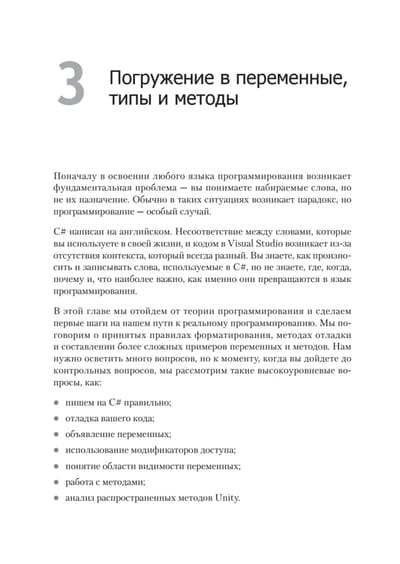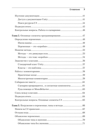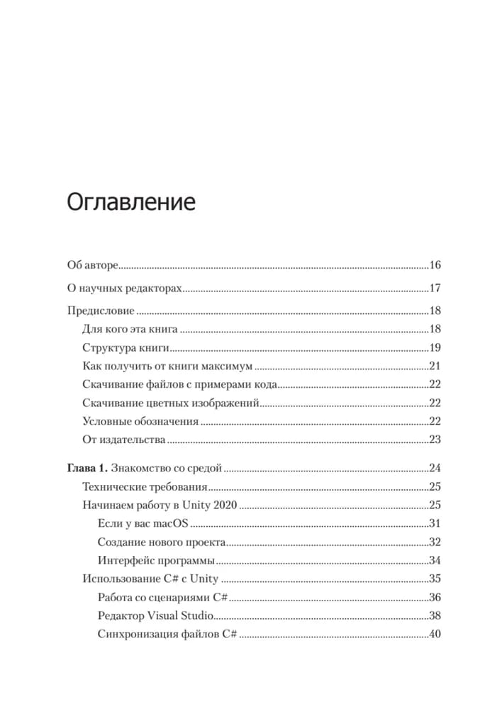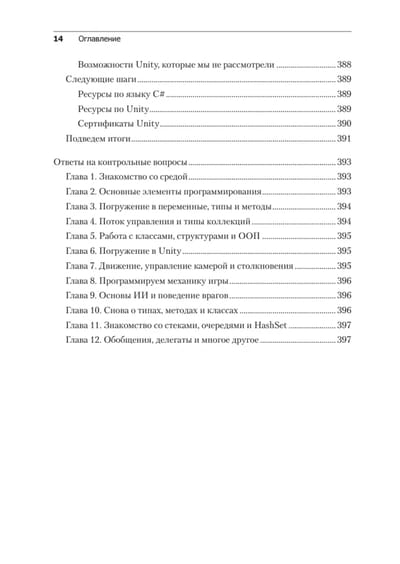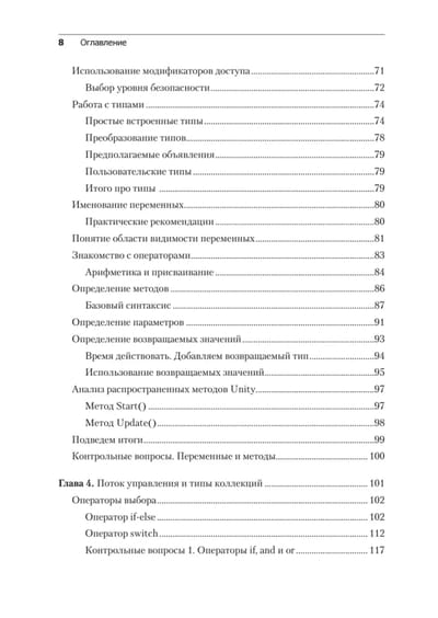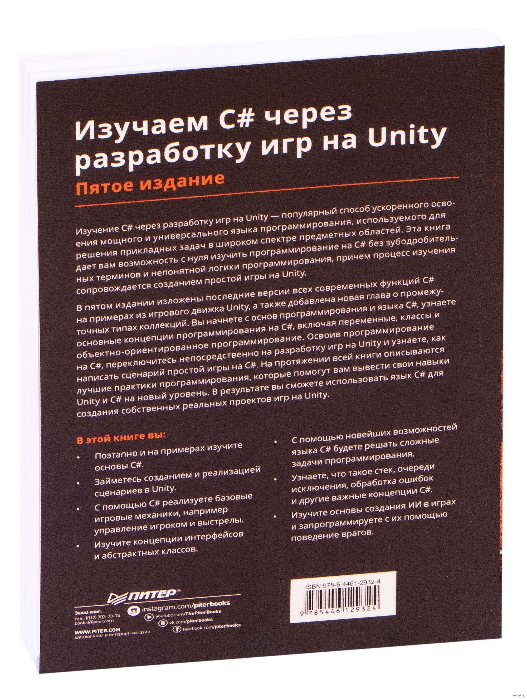 В пятом издании изложены последние версии всех современных функций C# на примерах из игрового движка Unity, а также добавлена новая глава о промежуточных типах коллекций. Вы начнете с основ программирования и языка C#, узнаете основные концепции программирования на С#, включая переменные, классы и объектно-ориентированное программирование. Освоив программирование на C#, переключитесь непосредственно на разработку игр на Unity и узнаете, как написать сценарий простой игры на C#. На протяжении всей книги описываются лучшие практики программирования, которые помогут вам вывести свои навыки Unity и C# на новый уровень. В результате вы сможете использовать язык C # для создания собственных реальных проектов игр на Unity.