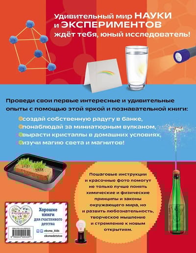 В этой энциклопедии школьников ждёт увлекательный мир опытов! Здесь собраны самые интересные эксперименты с воздухом, светом, звуком, гравитацией, магнетизмом и электричеством, а также опыты по химии и естествознанию. Подробные пошаговые инструкции помогут ребятам правильно провести каждый эксперимент и в то же время узнать много нового. А ещё книга разбудит творческое мышление и поможет понять законы окружающего мира.
