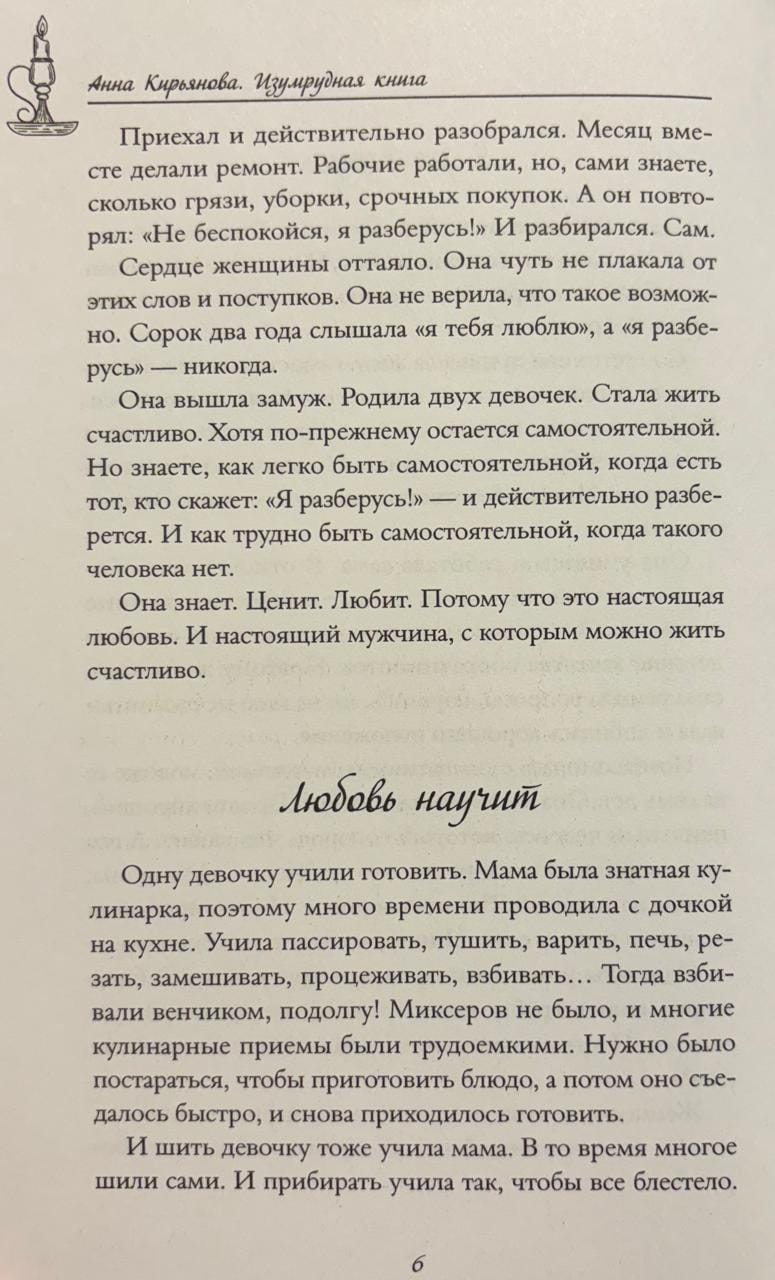 Изумрудный, тихий свет философско-психологических эссе осветит самые привычные моменты жизни, превращая их в ключи к пониманию себя, любви и внутренней опоры. Простые, но мудрые истории помогут вернуть душевное тепло, услышать голос собственной души, различить правду и самообман, заметить радость маленьких мгновений и пройти через трудности, сохранив себя. Это бережное наставничество, которое ведет от тревоги — к спокойствию, от сомнений — к ясности, от слабости — к тихой силе.