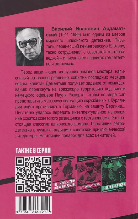 Василий Иванович Ардаматский (1911–1989) – писатель, военкор, киносценарист – заслуженно считается классиком приключенческого жанра. Перед вами – одни из лучших произведений мастера, написанные на основе реальных событий последних месяцев войны. Капитан Дементьев получает задание от командования: проникнуть на вражескую территорию под видом немецкого офицера Пауля Рюкерта, чтобы по мере сил предотвратить массовую эвакуацию окружённых в Курляндии войск противника в Германию, на защиту Берлина... Писателю удалось передать интеллектуальное напряжение схватки советского разведчика с гестаповцами. Герои «Ответной операции» разведчики и работники МГБ СССР – самоотверженно трудятся, чтобы очистить освобождающийся Берлин от остатков нацистской агентуры, ищущей новых хозяев после поражения в войне. Это настоящая классика шпионского романа, блестящий ретро-детектив в лучших традициях советской приключенческой литературы. Настоящий подарок для всех ценителей.