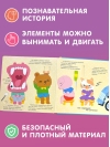 26 интерактивных элементов в одной книге-развивашке! Пазлы, клапаны, задвижки, которые можно двигать, крутить, вынимать из книжки. Прочная и безопасная конструкция: твёрдая обложка, скругленные углы, толстые картонные страницы с глянцевым лакированием. Только безопасные материалы!