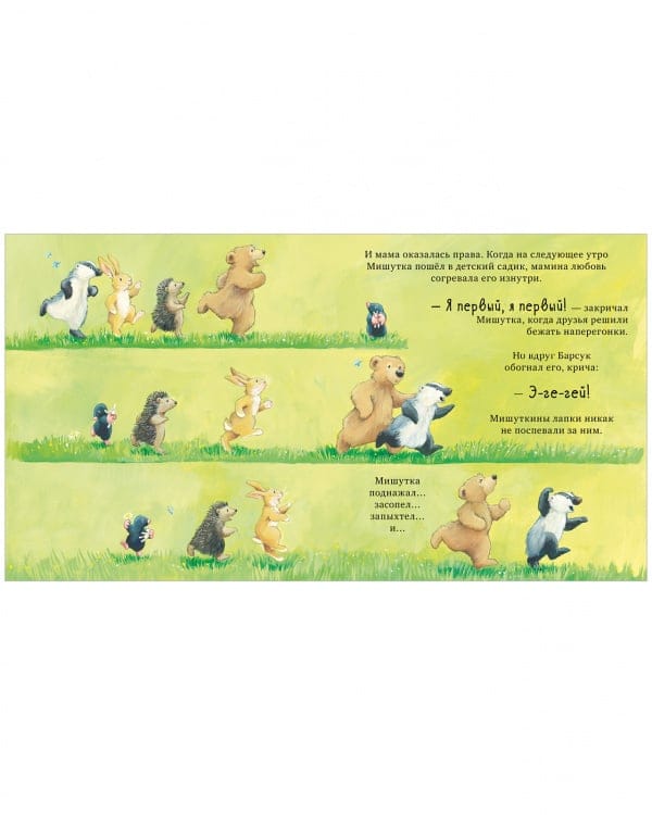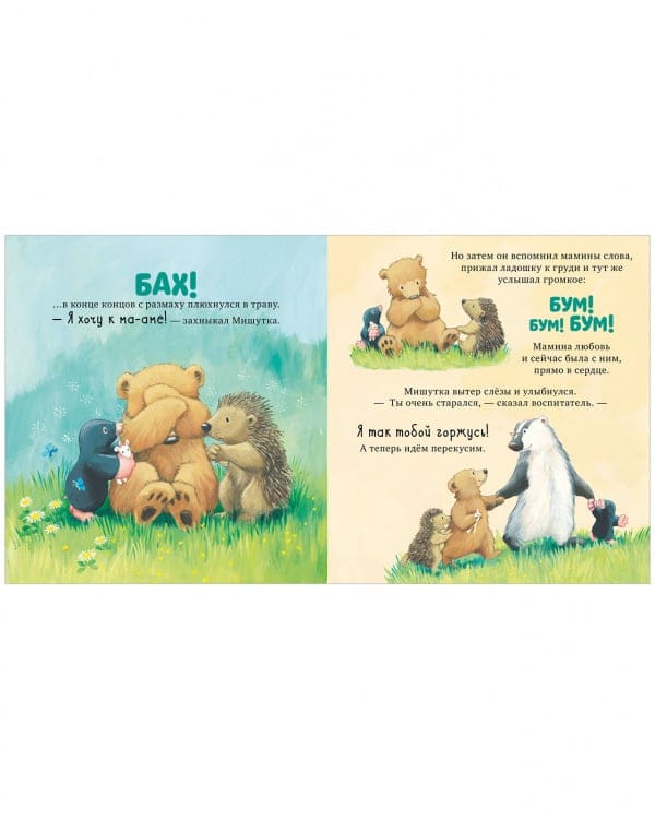 Книга "Я люблю тебя всем сердцем" – сказка о безграничной любви между мамой и ребенком. Это история про маленького Мишутку, у которого все идет не так как он бы хотел: сначала малыш сломал любимый мамин цветок, потом весь испачкался, а вдобавок еще и потерял воздушного змея… А что, если мама его разлюбит?! А еще наш взрослый малыш медвежонок Мишутка скоро пойдет в детский сад, и разлука с мамой и привычным образом жизни, а также с любимыми игрушками его пугает. Мама научит его, как пронести свою любовь через долгий день разлуки, ведь она всегда будет рядом.