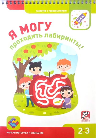 Тетрадь поможет научиться правильно держать карандаш, проводить линии точно и аккуратно, подготовить руку к письму. Работа с лабиринтами - это тренировка мелкой моторики, которая важна для развития речи. Тетрадь предназначена для занятий с детьми 2-3 лет. Задания в тетради выстроены по принципу от простого к сложному. Это поможет ребёнку почувствовать уверенность в своих силах. В тетради есть лист с 55 наклейками, которые так нравятся детям. Заламинированные многоразовые наклейки отлично подойдут для малышей.