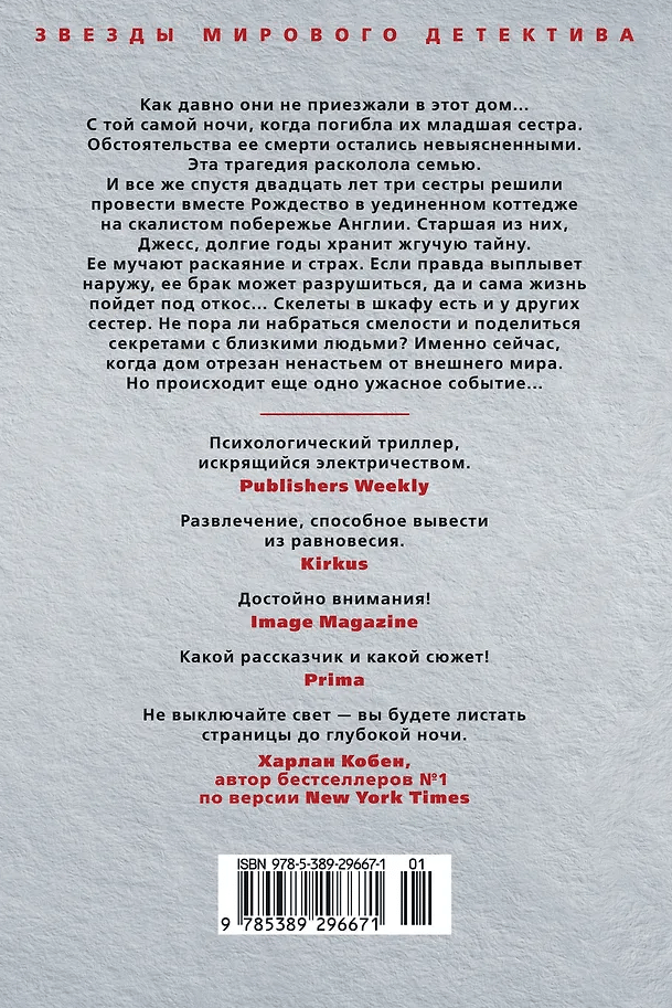 Как давно они не приезжали в этот дом... С той самой ночи, когда погибла их младшая сестра. Обстоятельства ее смерти остались невыясненными. Эта трагедия расколола семью. И все же спустя двадцать лет три сестры решили провести вместе Рождество в уединенном коттедже на скалистом побережье Англии.