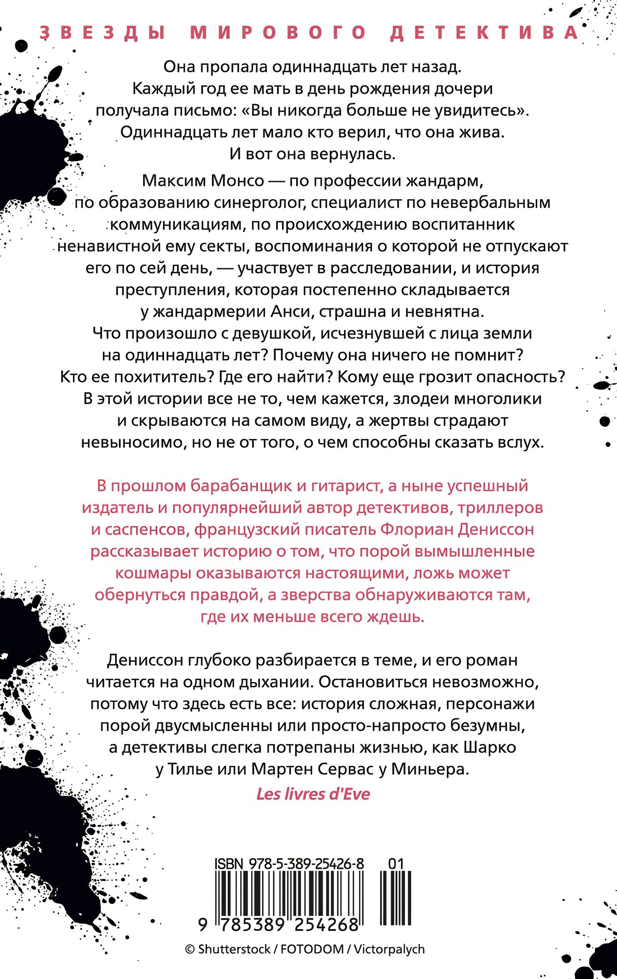 В прошлом барабанщик и гитарист, а ныне успешный издатель и популярнейший автор детективов, триллеров и саспенсов, французский писатель Флориан Дениссон рассказывает историю о том, что порой вымышленные кошмары оказываются настоящими, ложь может обернуться правдой, а зверства обнаруживаются там, где их меньше всего ждешь.